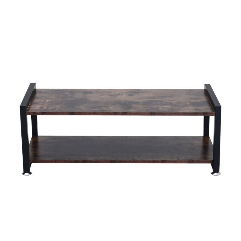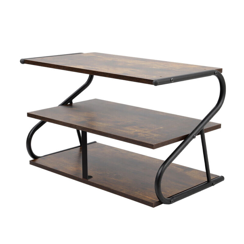 Industrial Shoe Rack 2/3 Tiers Wood Metal Shelf Footwear Organizer Space Saving