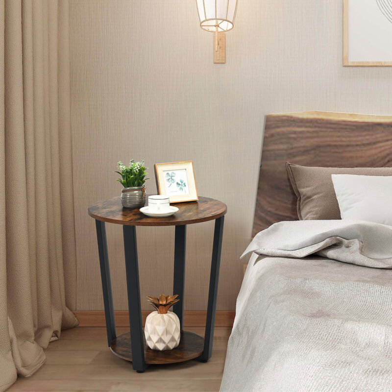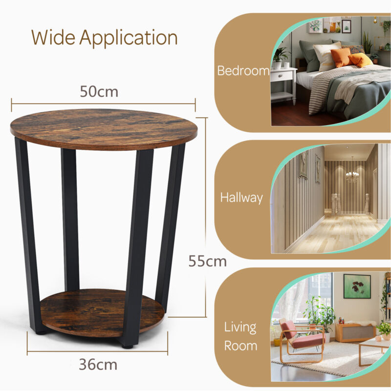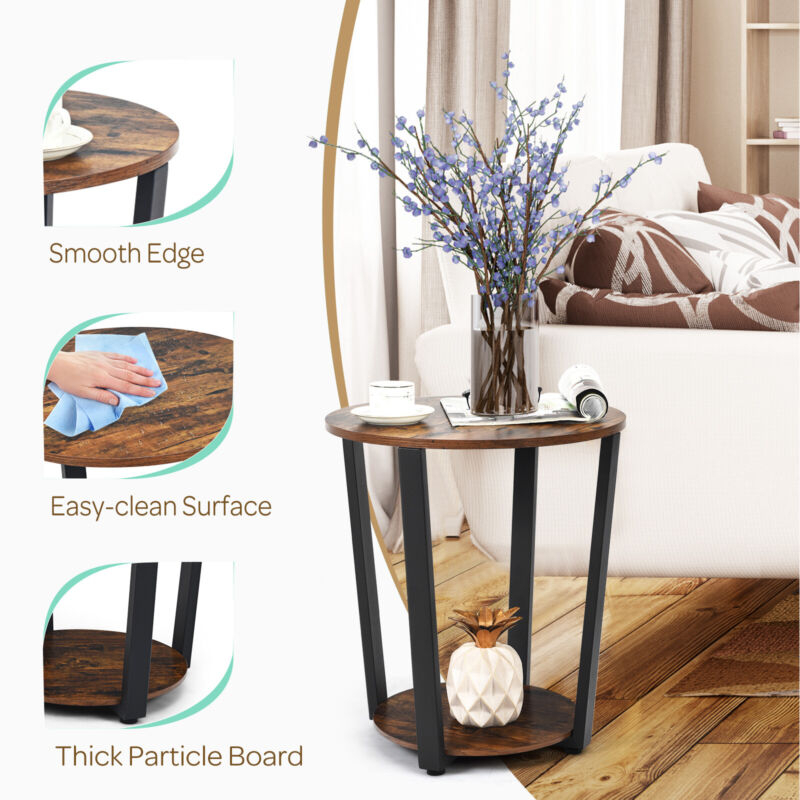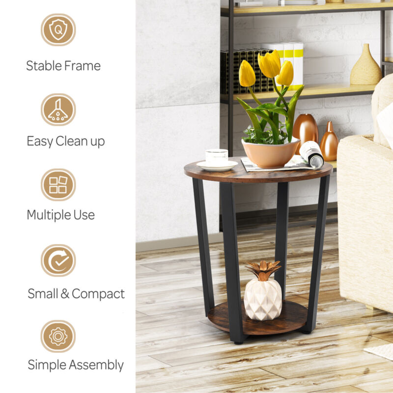 Industrial Side Table 2-Tier Rustic Coffee Snack Table Laptop Desk Home Office