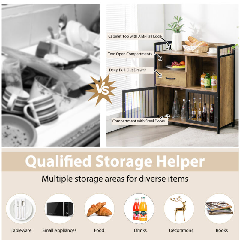 Industrial Sideboard Cabinet w/ Drawer & Doors Freestanding Storage Cabinet