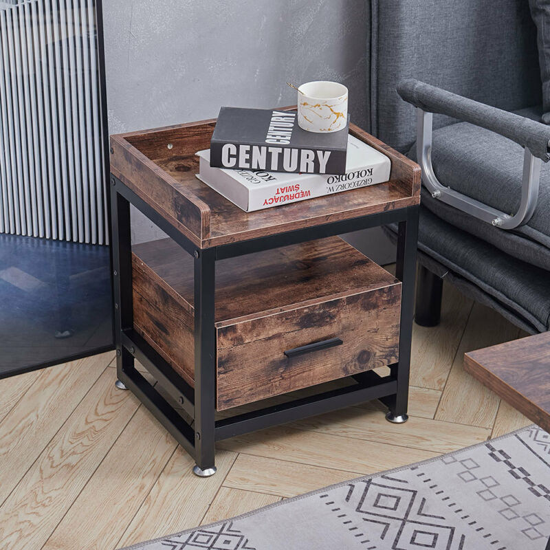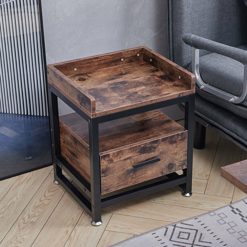 Industrial Sofa Side End Coffee Table With Drawer Bedside Lamp Table Nightstand