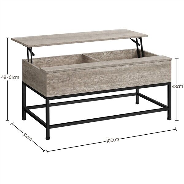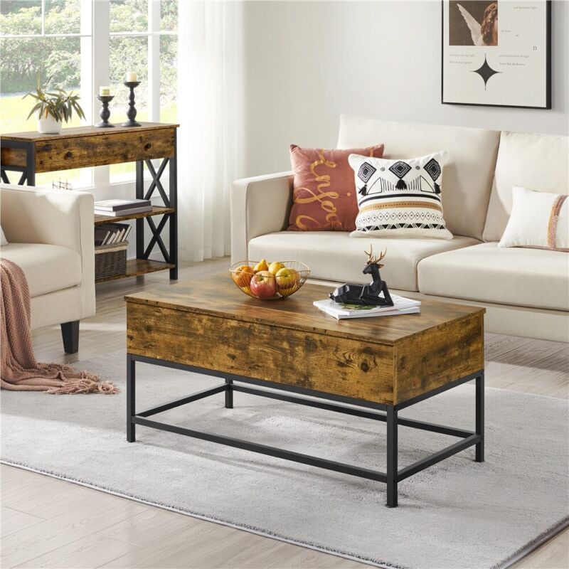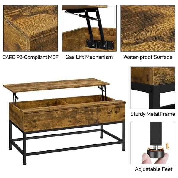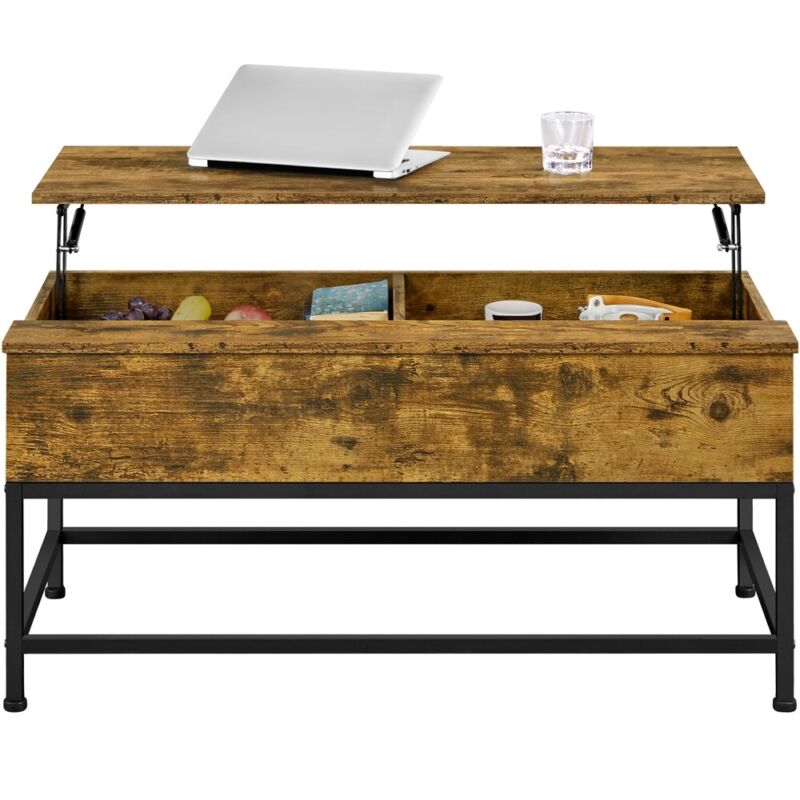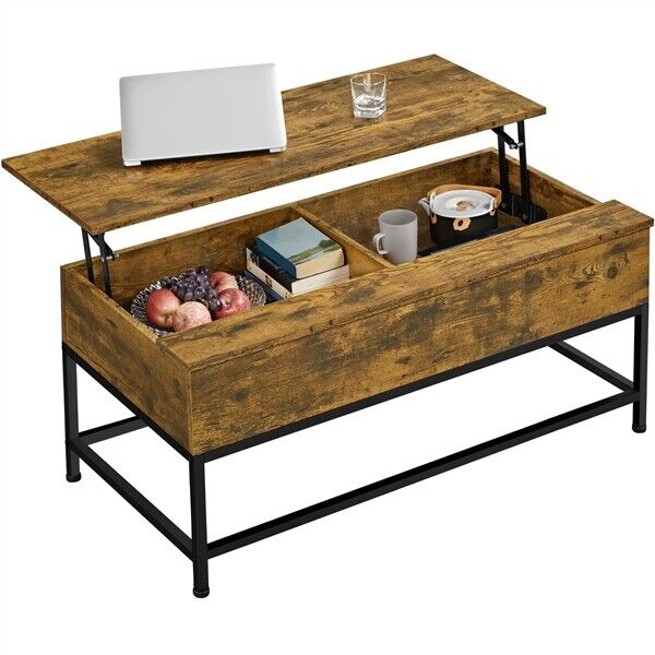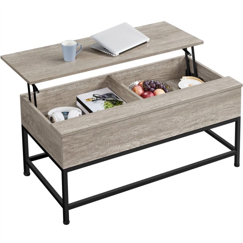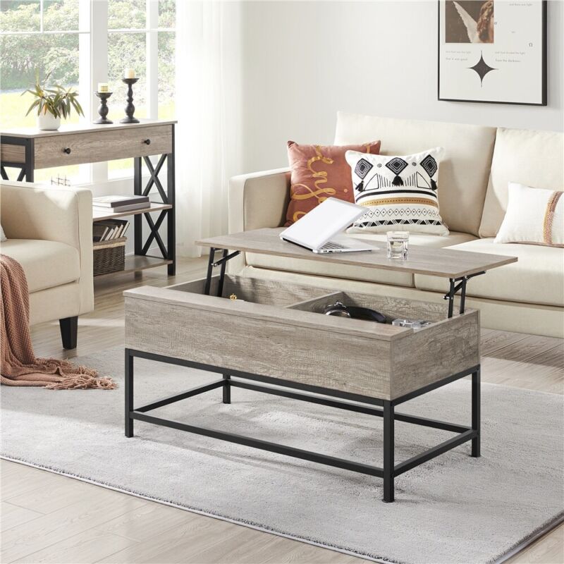 Industrial Split Lift-top Coffee Table with Storage Compartments & Metal Legs