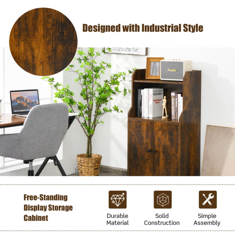 Industrial Storage Bookcase Wooden Diplay Cabinet Cupboard with Adjustable Shelf