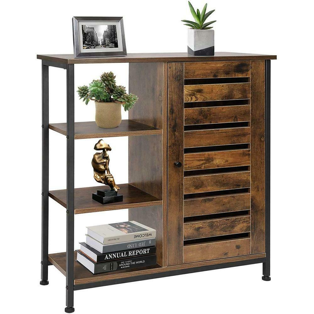 Industrial Storage Cabinet Freestanding Cupboard Sideboard w/ 3 Shelves & Door