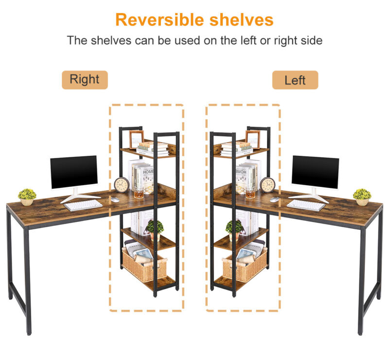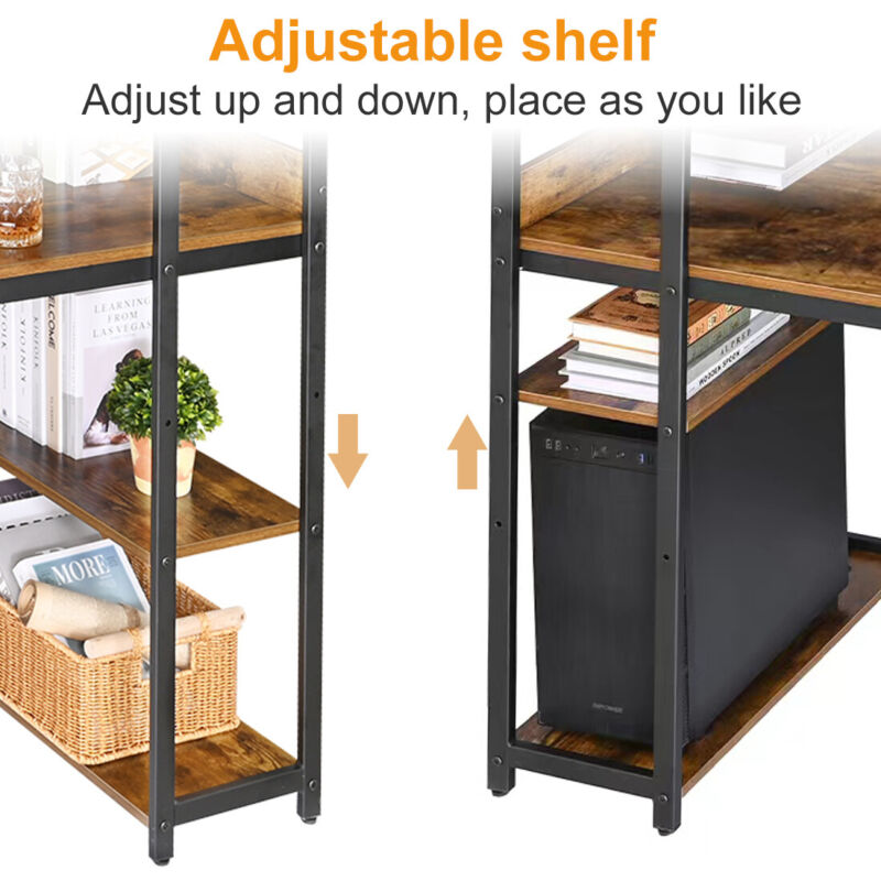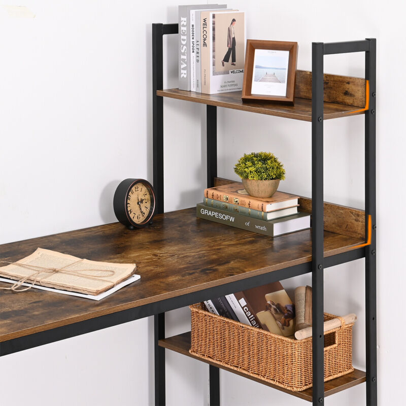 Industrial Study Computer Desk Office Table with 3-layer Bookshelf Storage Rack