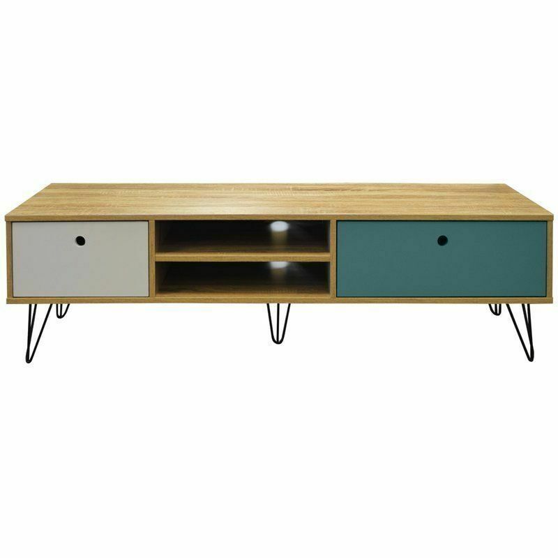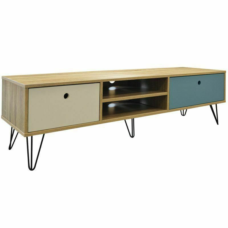 Industrial TV Stand Unit 2 Drawers Media Storage Hairpin Legs Retro TV Cabinet