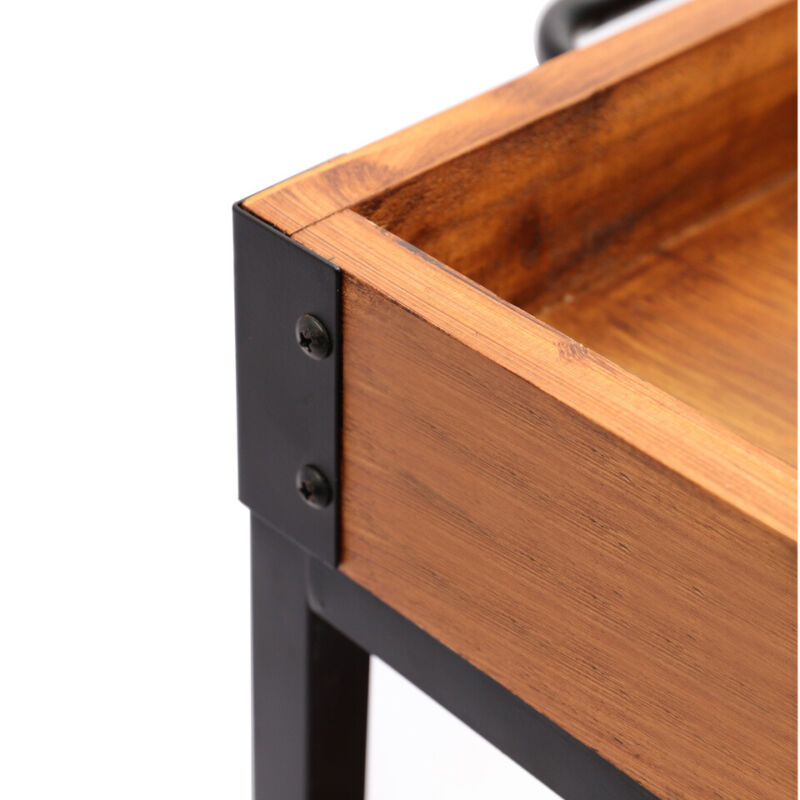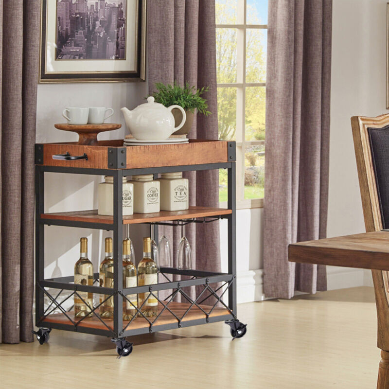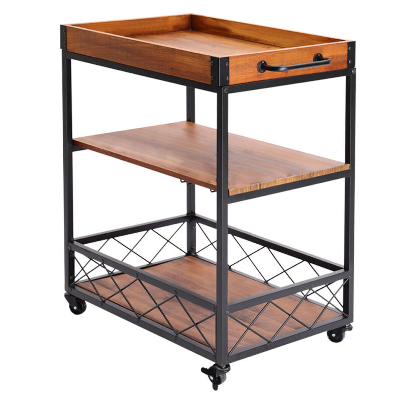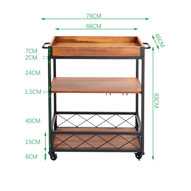 Industrial Wine Trolley Serving Tray Cart Wooden Drinks Bar Storage Wine Shelves