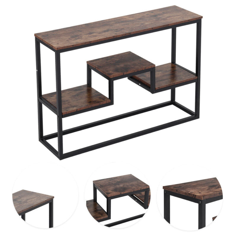 Industrial Wood TV Stand Side Console Table Retro Storage Display Shelf Rack UK