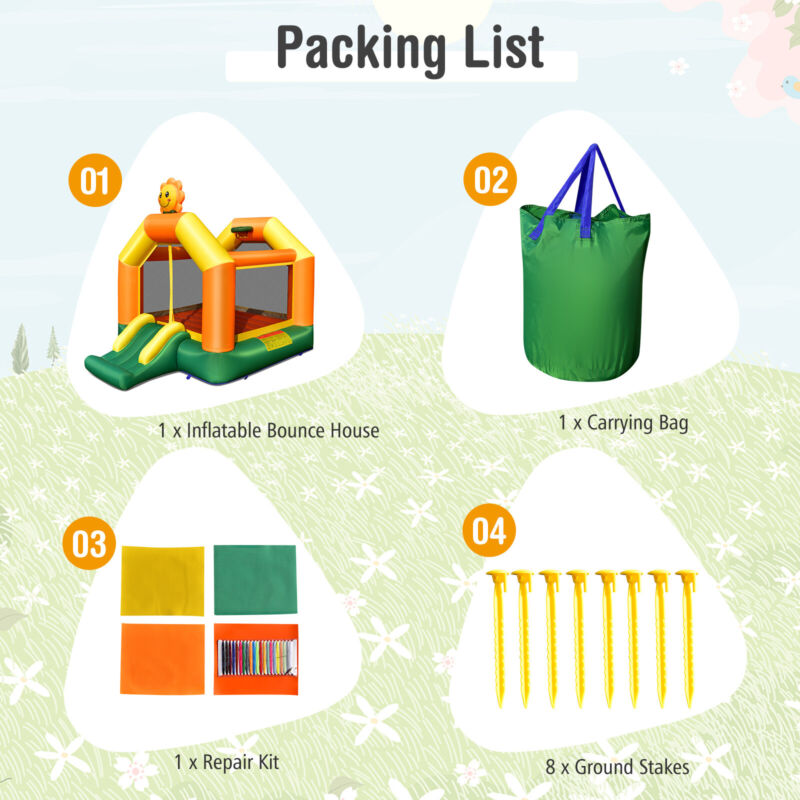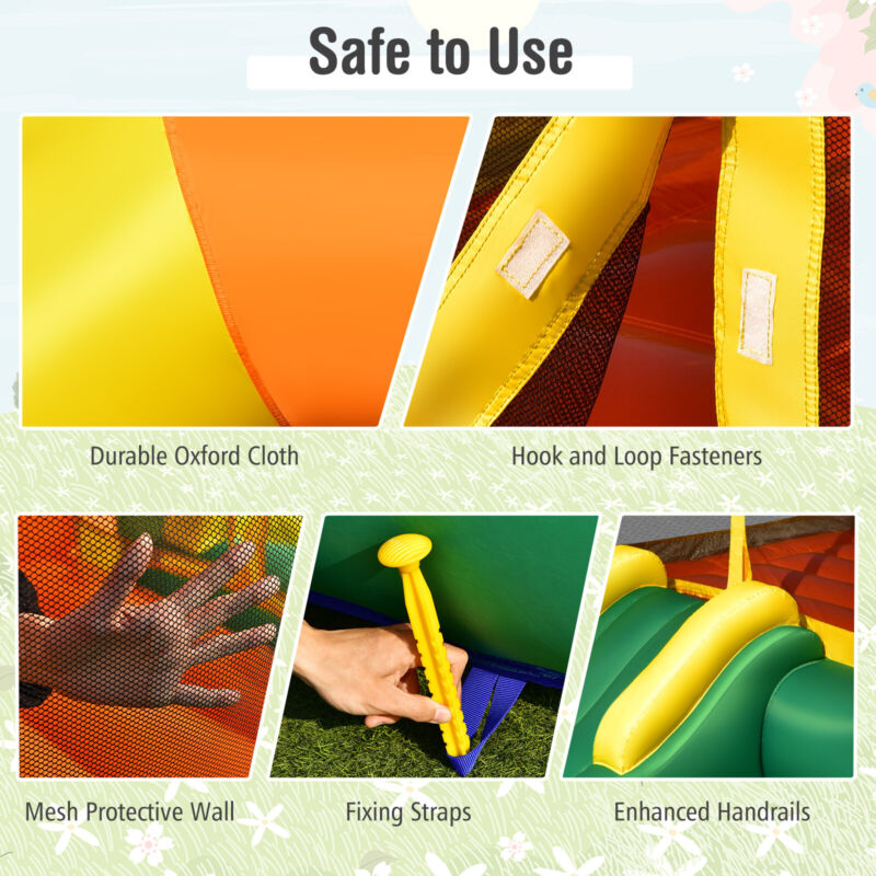 Inflatable Bounce House Kids Cute Castle Jumping Bouncer W/ Basketball Rim & Bag