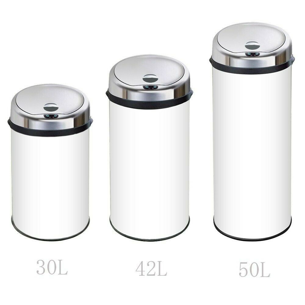 Inmotion White Stainless Steel Auto Sensor Kitchen Waste Dust Bin 30L, 42L, 50L