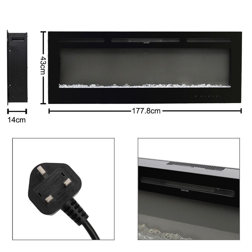Insert/Wall Mounted 70inch Electric Fireplace LED Flame Fire Heater with Remote