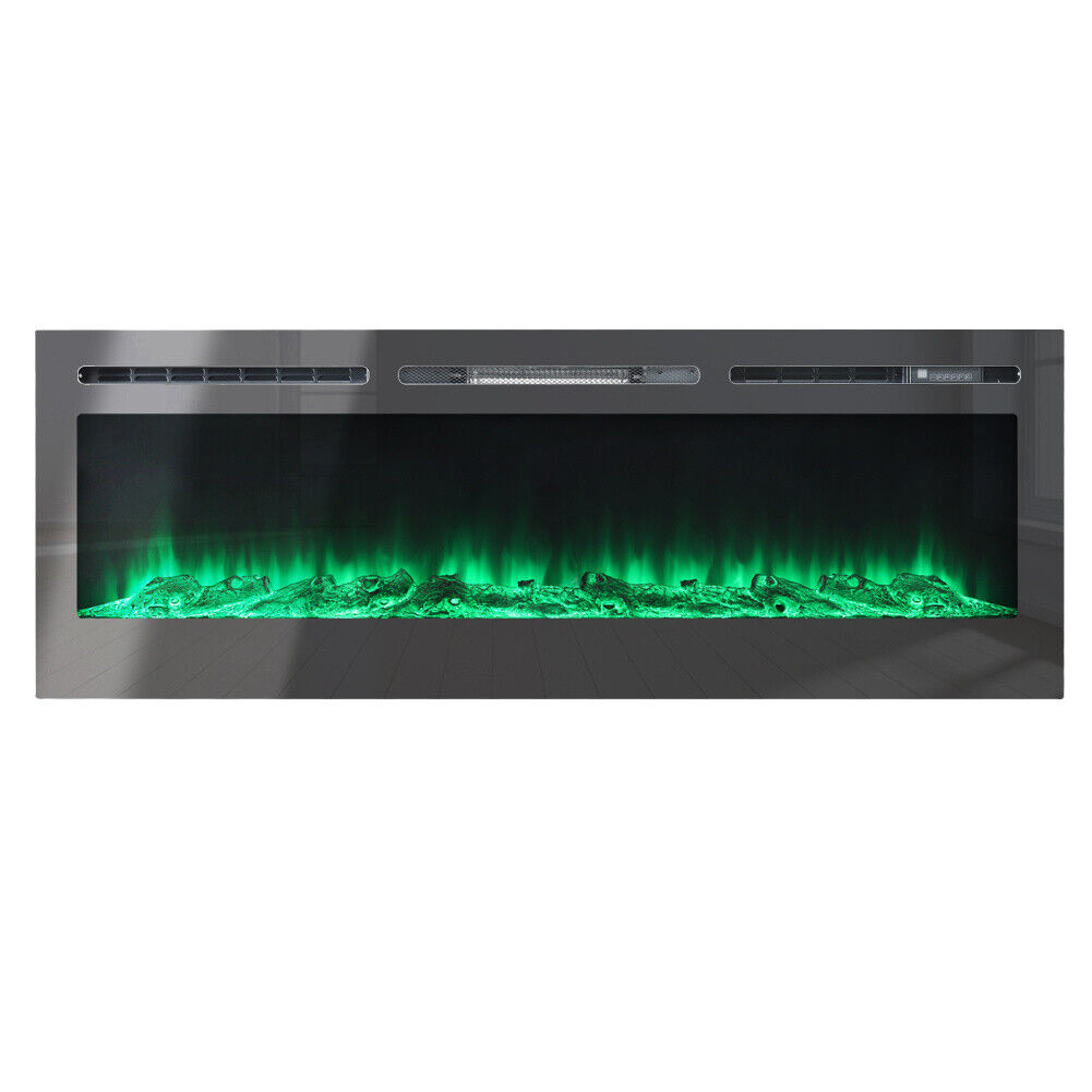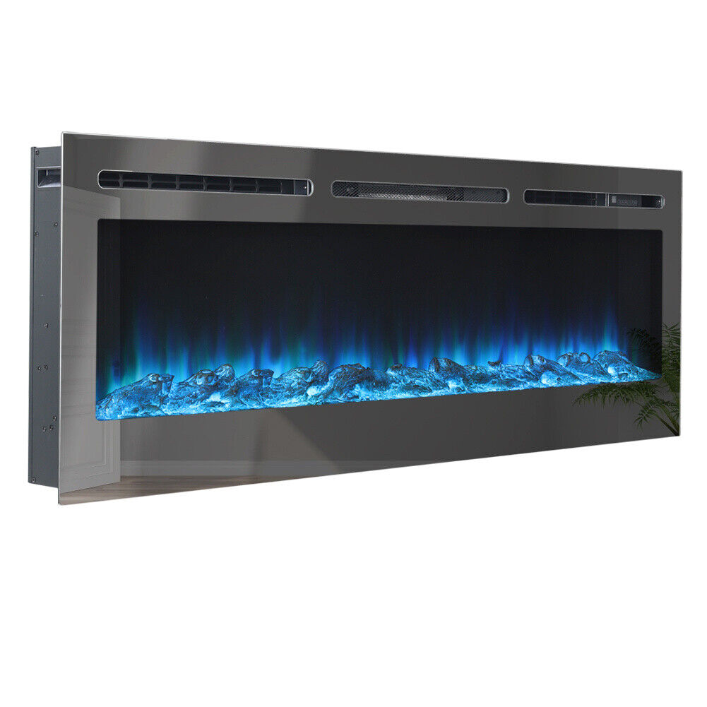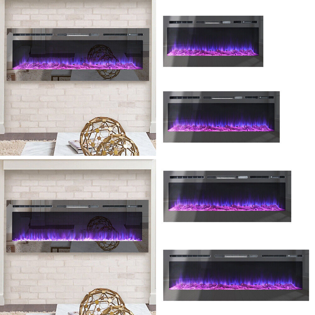 Insert/Wall Mounted Electric LED Fireplace Recessed Fire Heater 12 Flames Remote