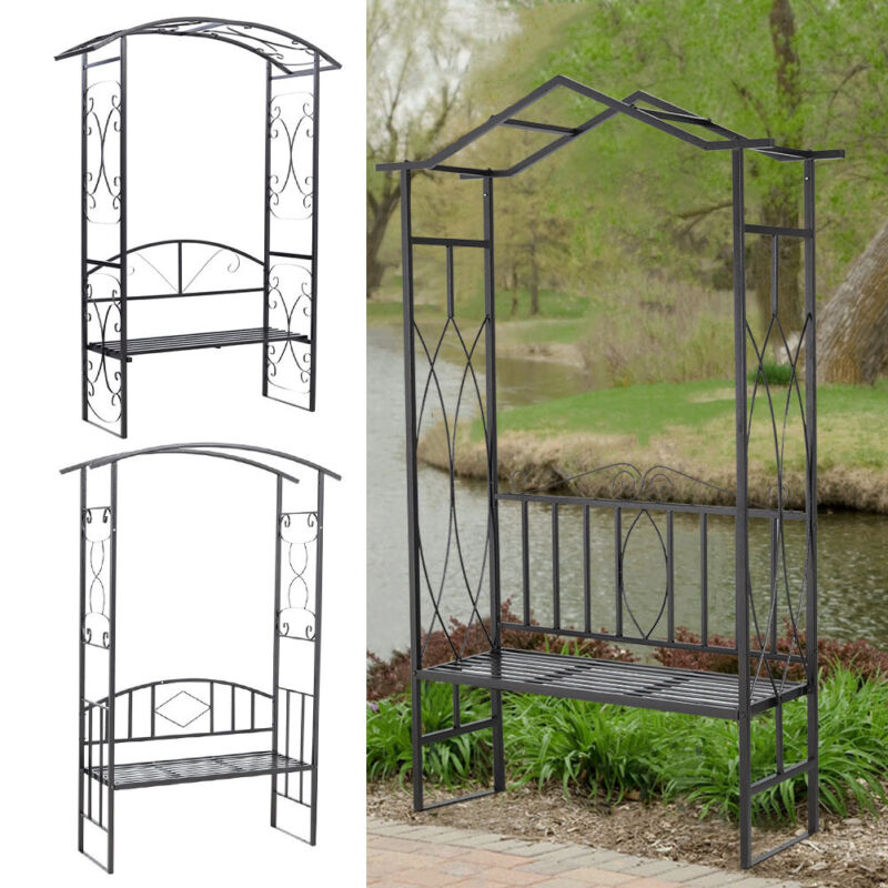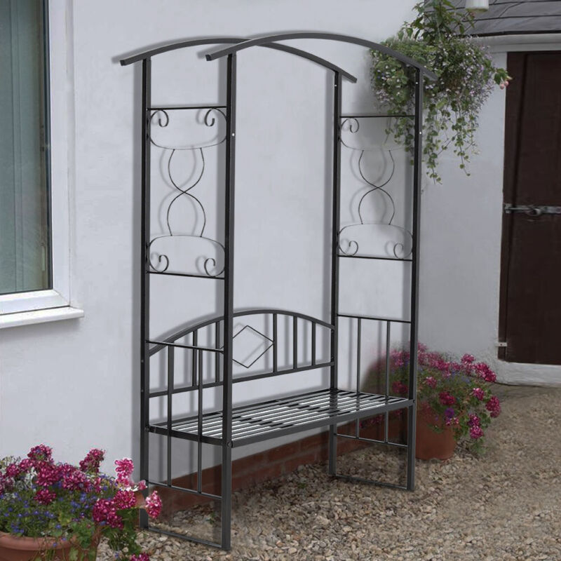 Iron Garden Arbour Pergola with Bench 2-Seater Plant Climbing Archway Loveseat