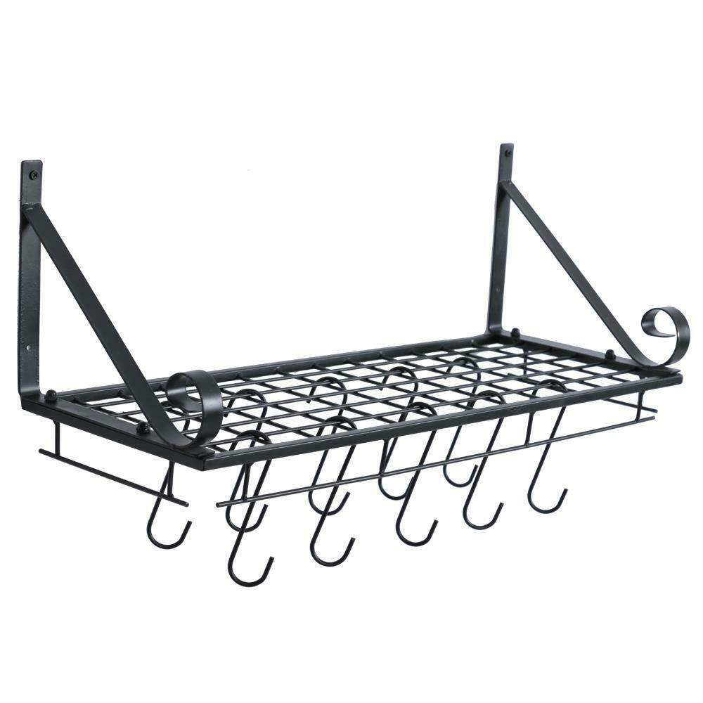 Iron Hanging Pot Pan Rack Hooks Storage Shelf Kitchen Ceiling Saucepan Holder