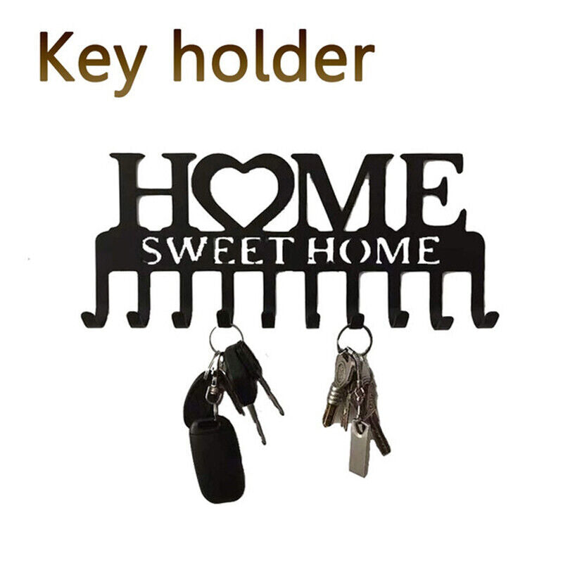 Iron Wall Mounted Home Sweet Hanging Hanger Hooks Hat Key Holder Rack Shelf UK