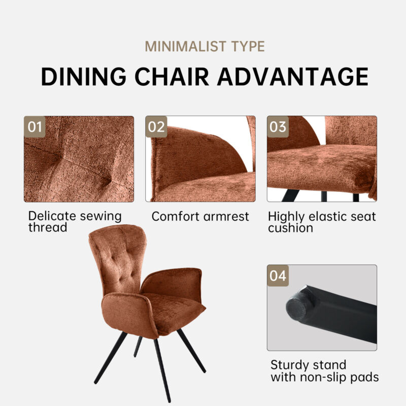 2PC Modern Dining Ergnomic Arm Chairs with Metal Leg Kitchen Living Room