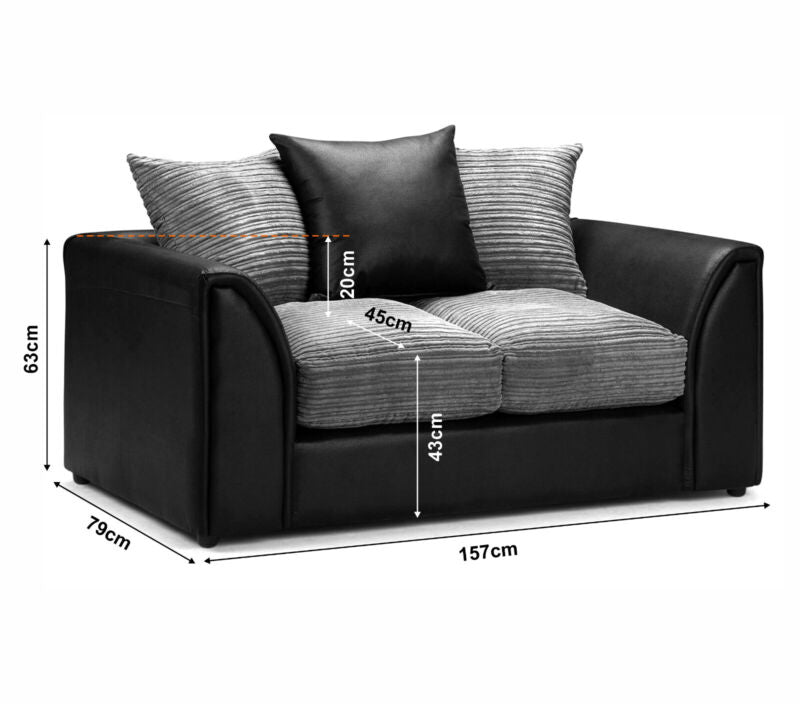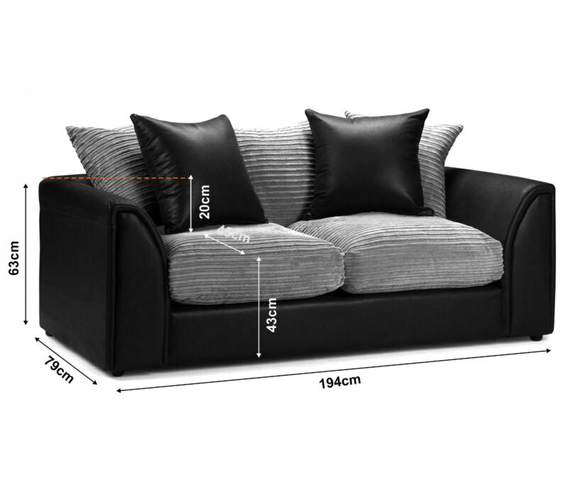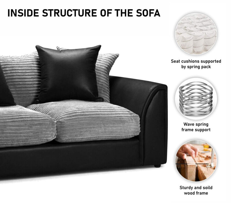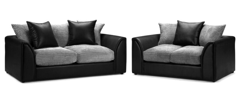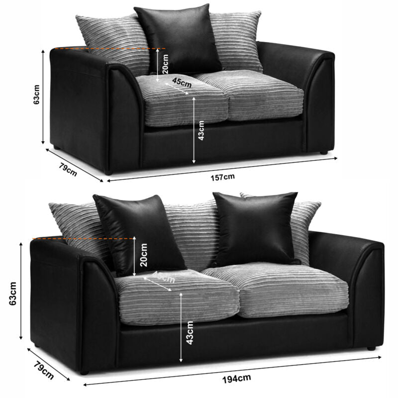 Jumbo Cord Sofa Suite Set 3+2 Seater Couch Grey & Black With Cushions