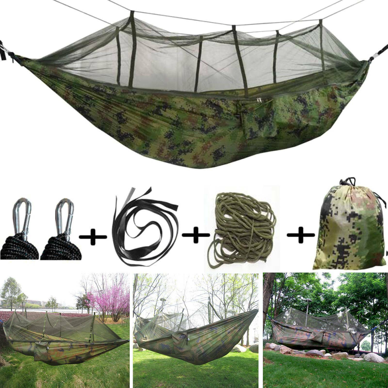 Jungle Parachute Hammock With Mosquito Net Military Bushcraft Double Person UK