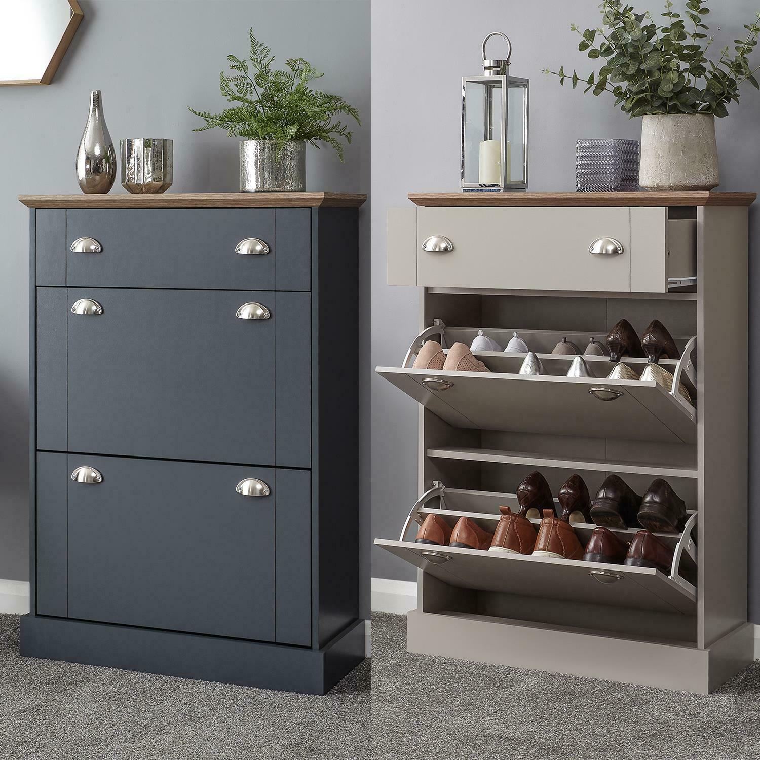 KENDAL DELUXE TWIN PULL DOWN 2 TIER SHOE CABINET RACK W/ DRAWER STORAGE CUPBOARD
