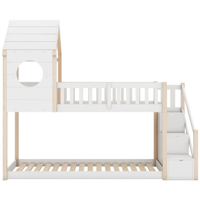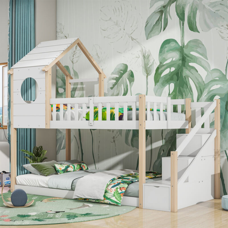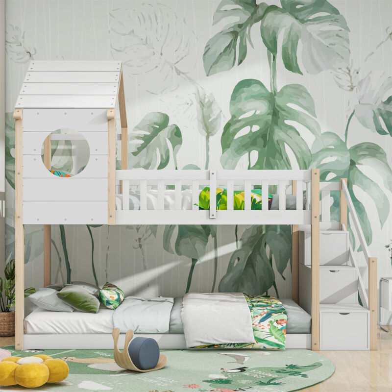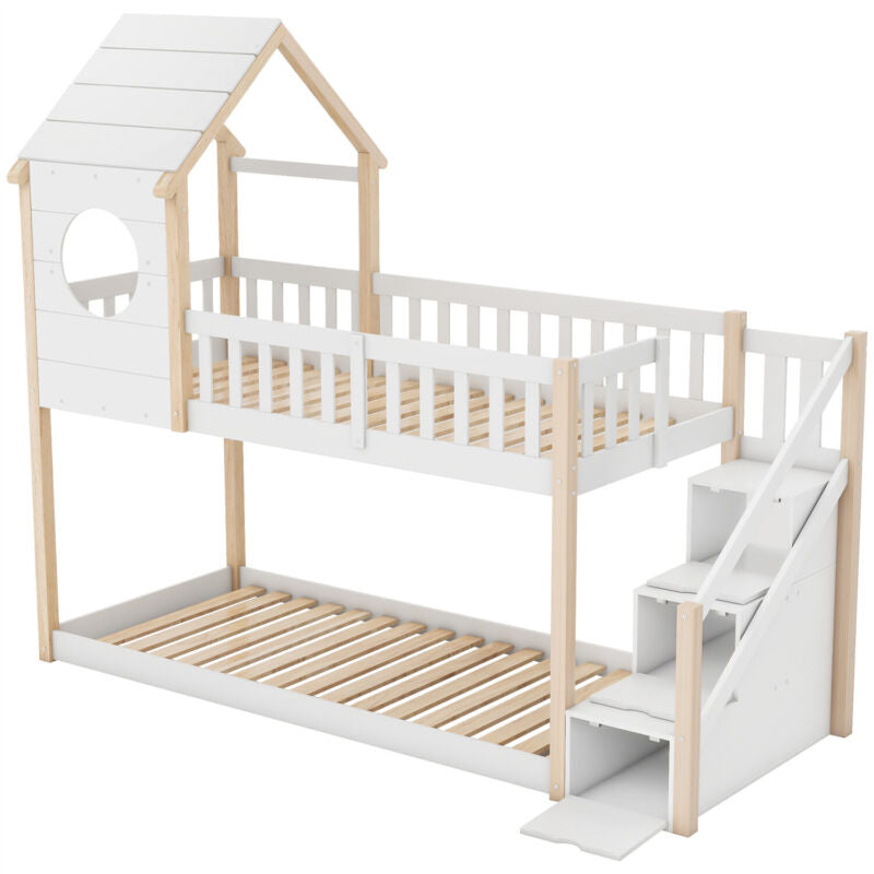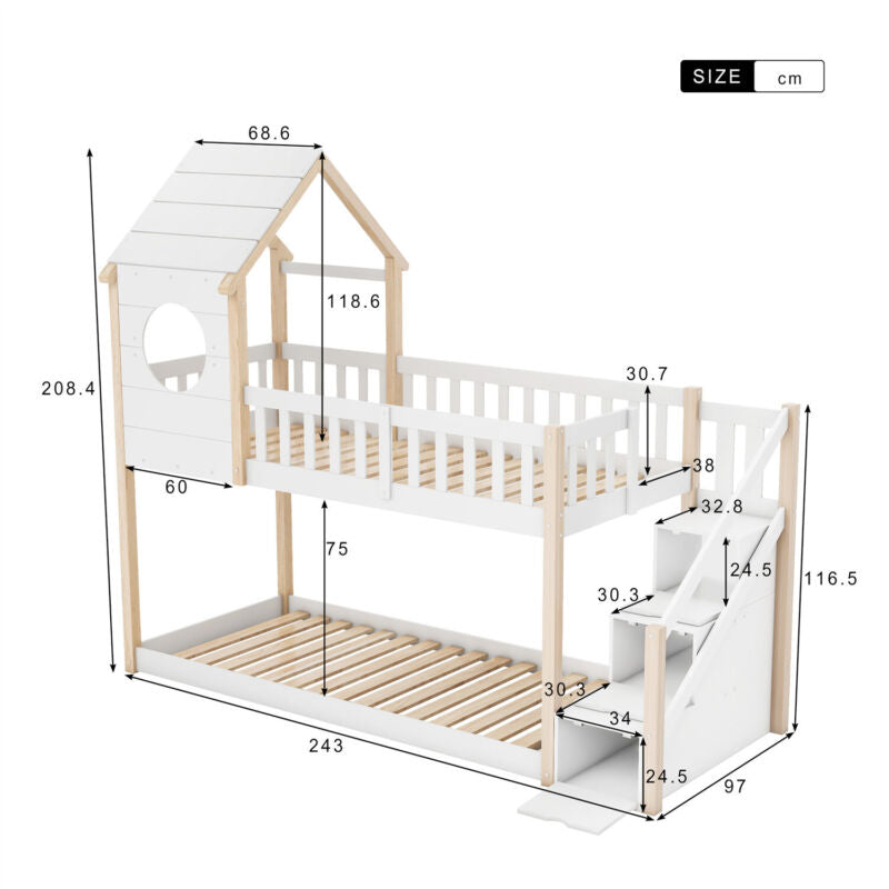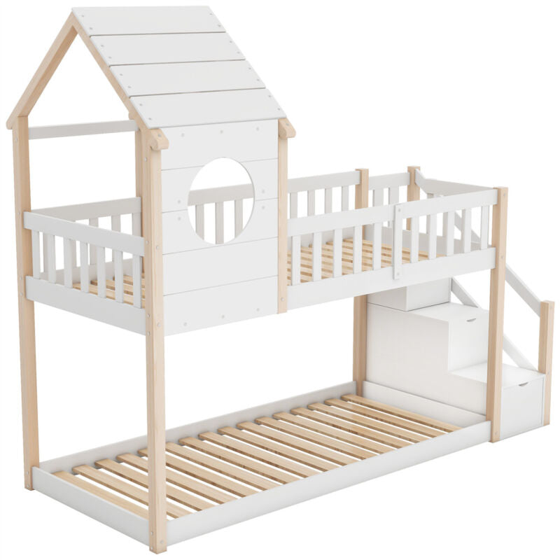 Kids Bunk Beds Frame High Sleeper 3ft Single Treehouse Pine Wood Bed w/Ladder BT