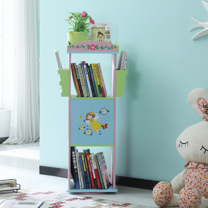 Kids Cartoon Bookcase Storage Unit Display Shelf, Wooden Bookshelf with Drawer