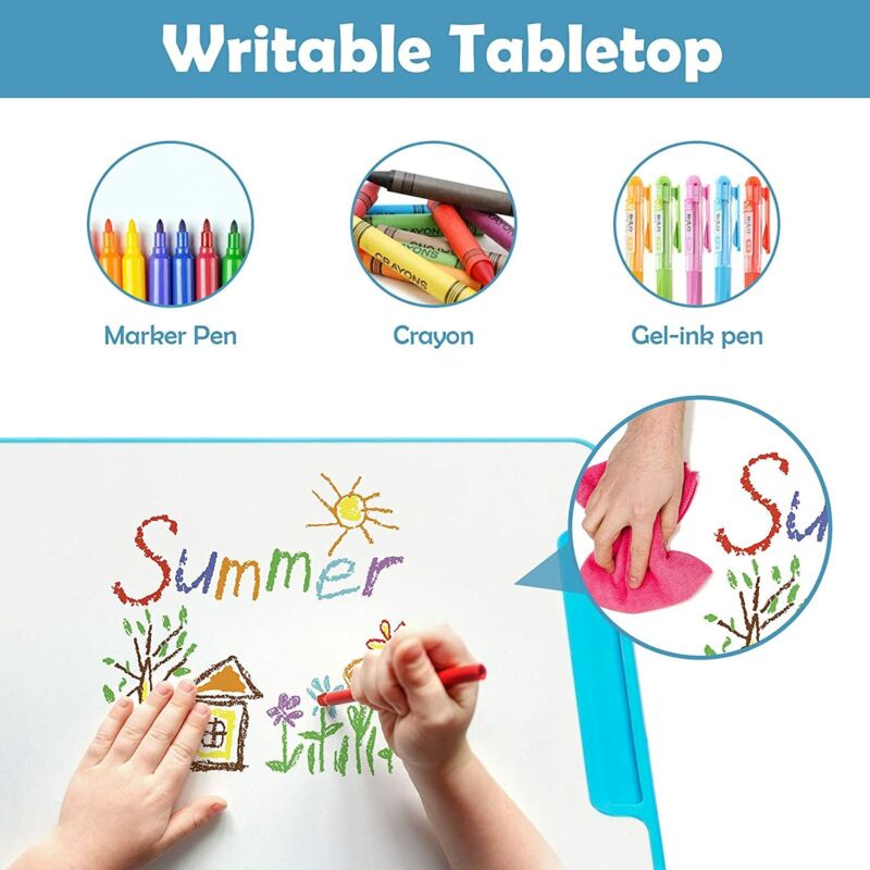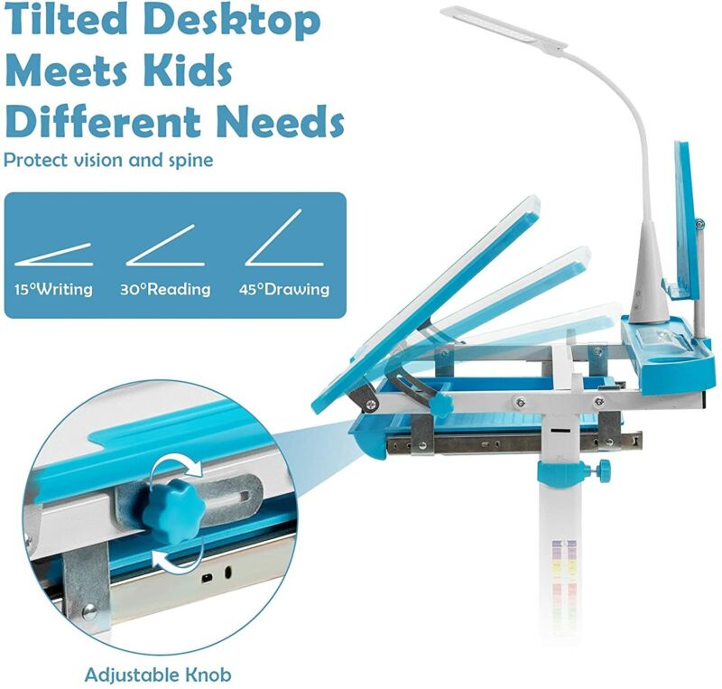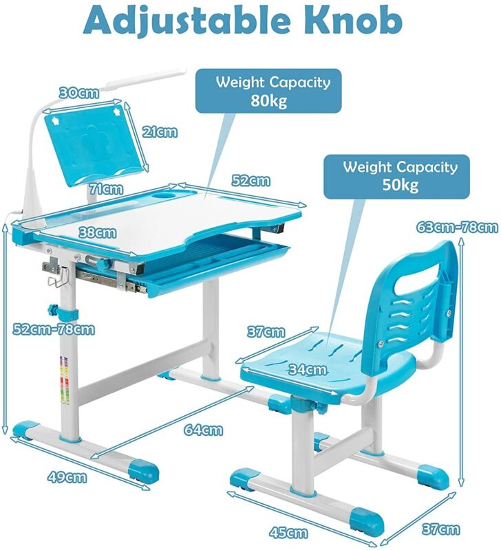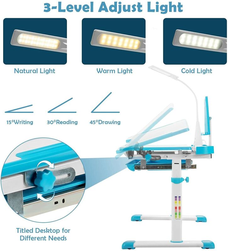 Kids Desk and Chair Set Adjustable Student Study Table W/Drawable Tabletop &Lamp