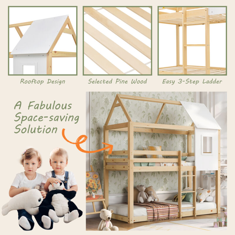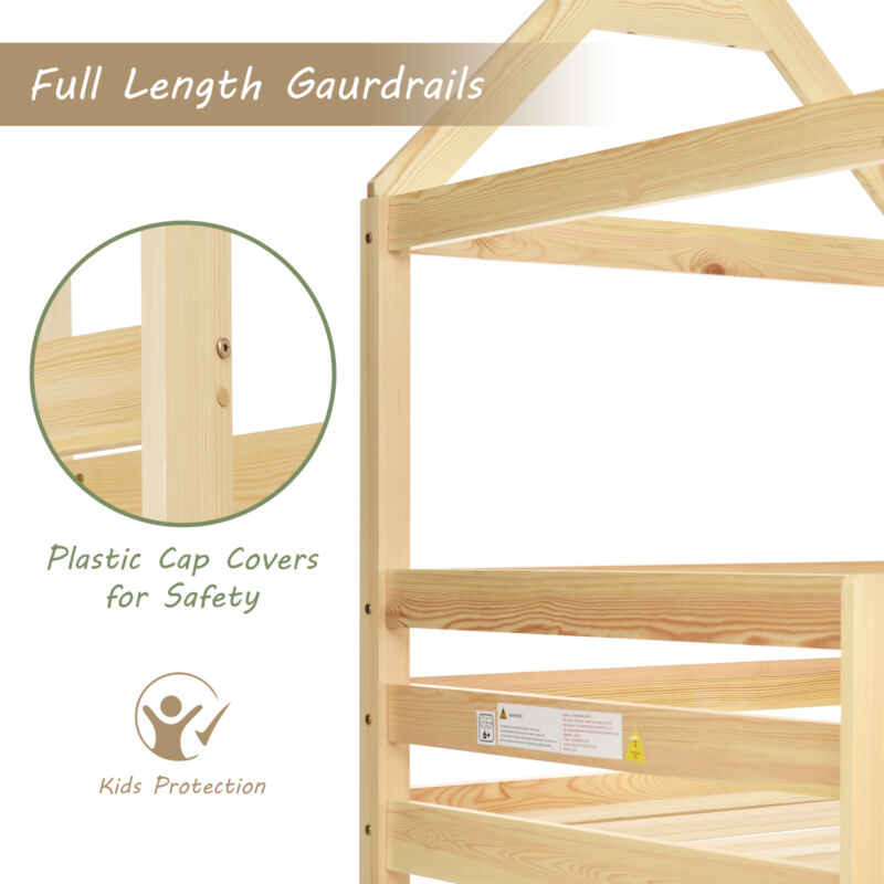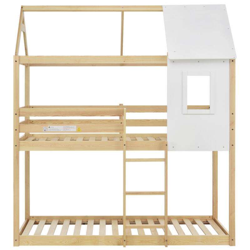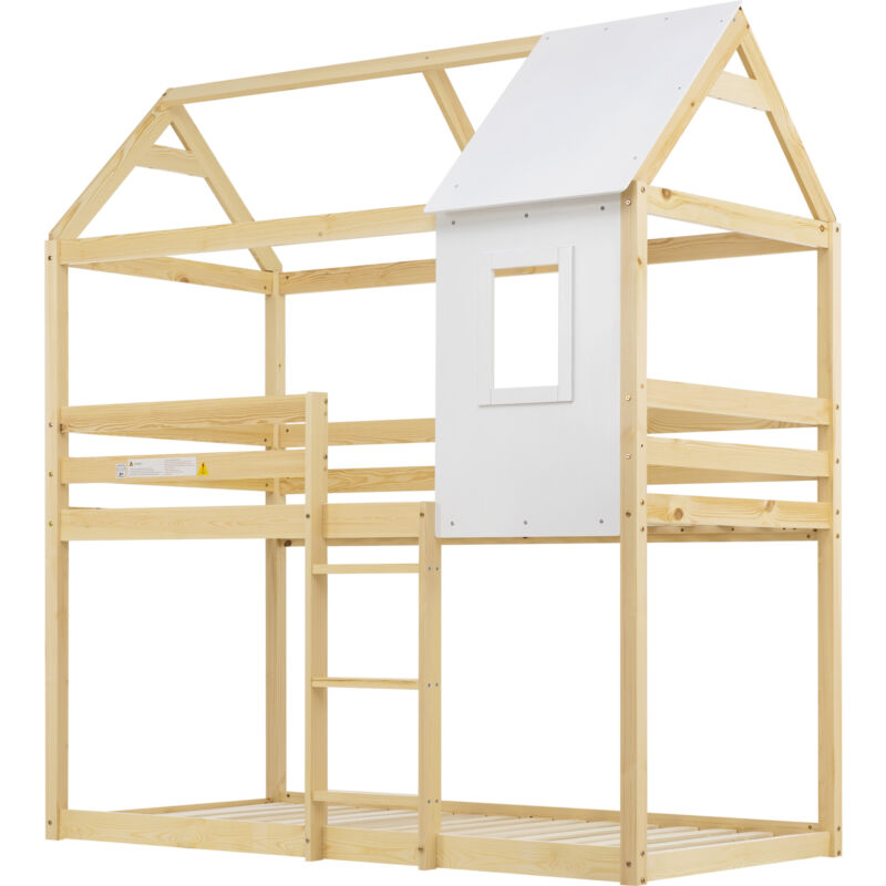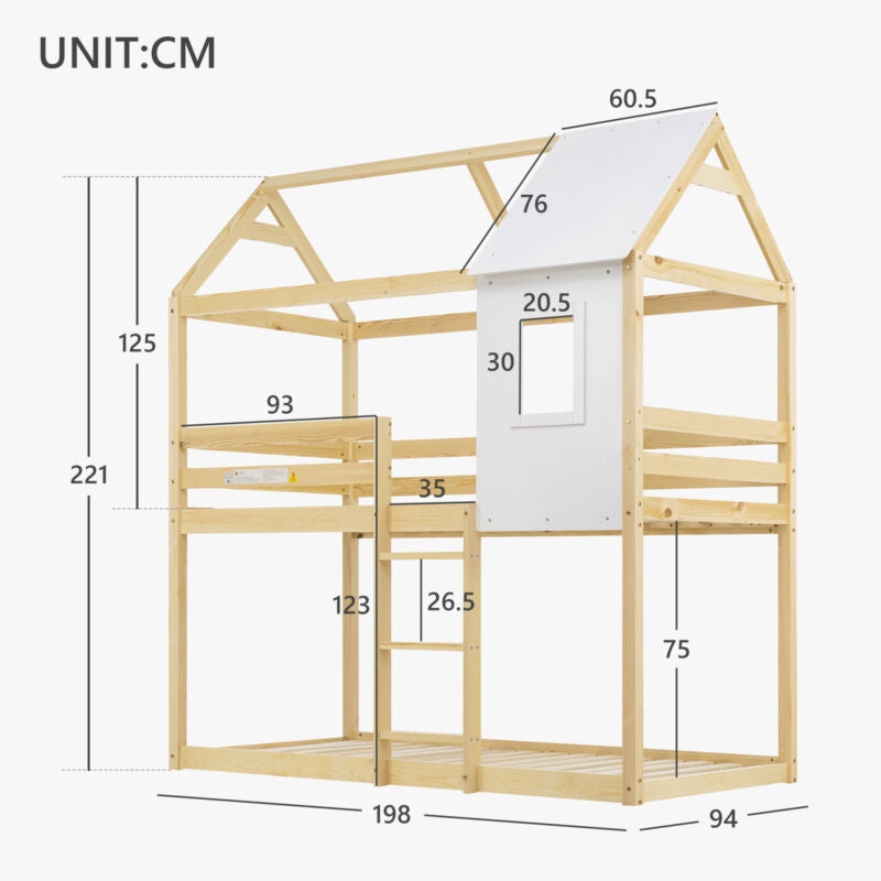 Kids Double Bunk Bed Frame Treehouse High Sleeper Solid Pine Wood 3FT 90x190cm