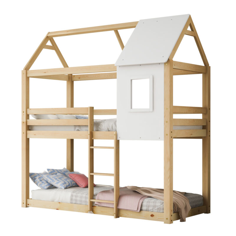 Features Treehouse Frame, with ladder, with Window, Slat-roll Foundation, Assembly Instructions