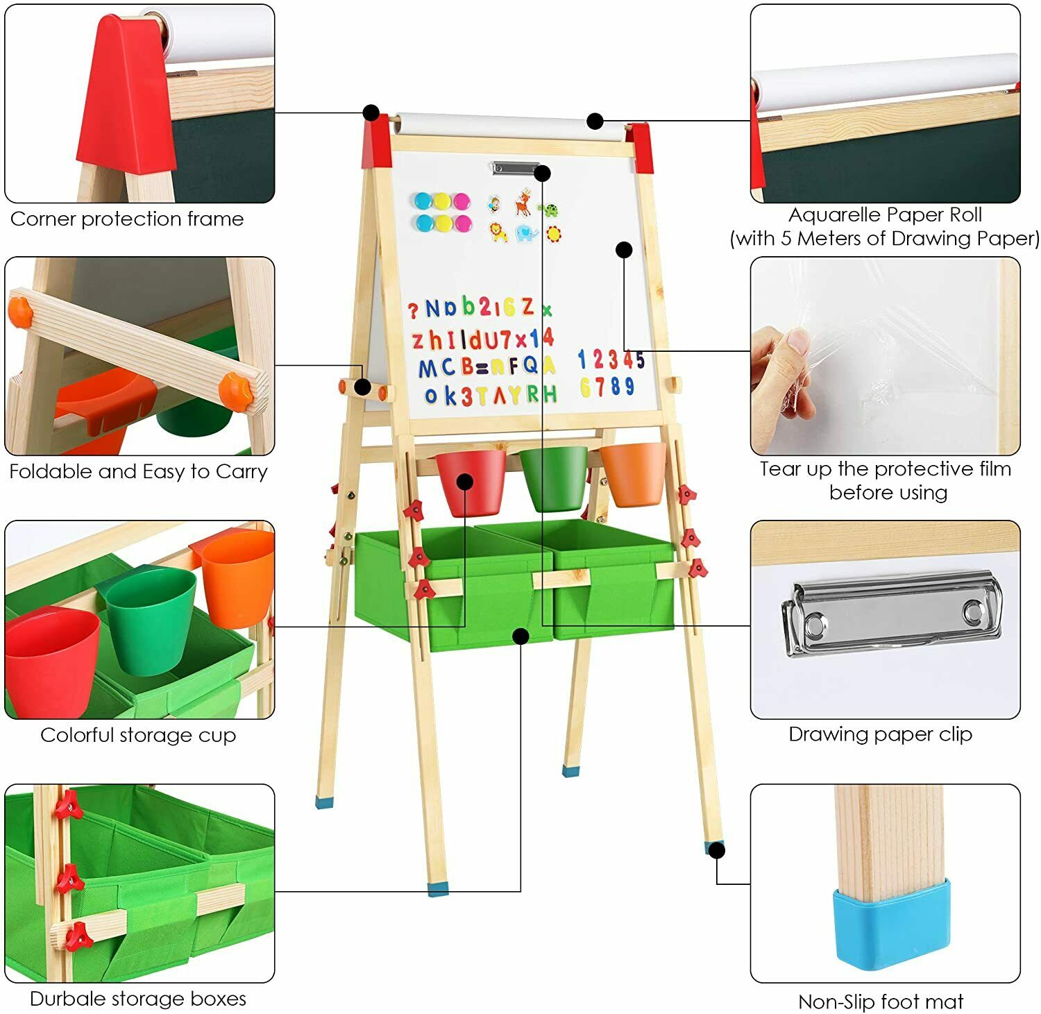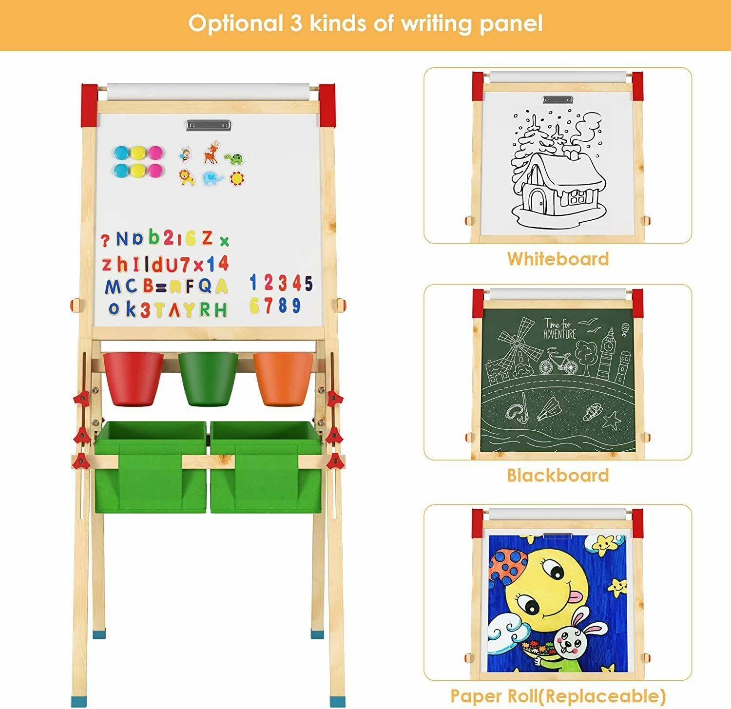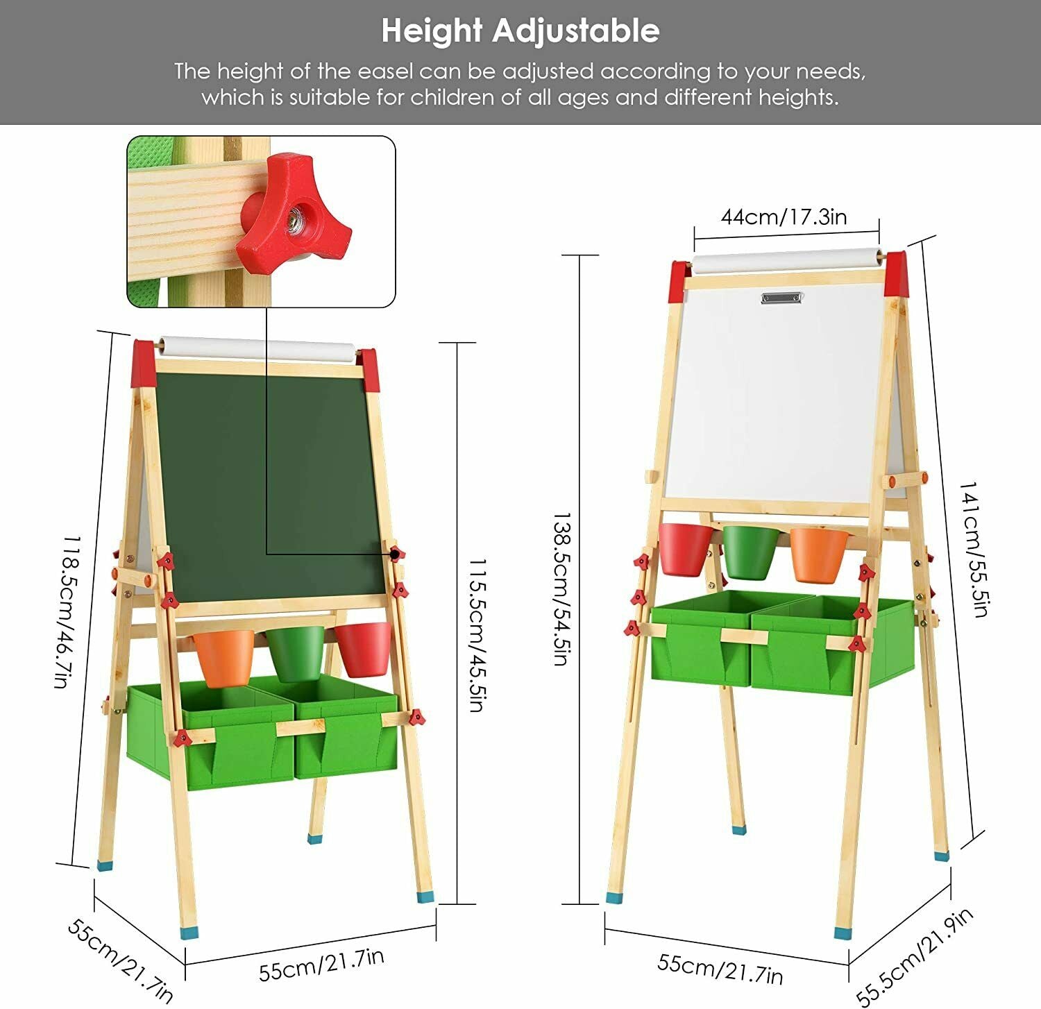 Kids Easel Wooden 2in 1 Blackboard Whiteboard White Drawing Writing Chalk Board