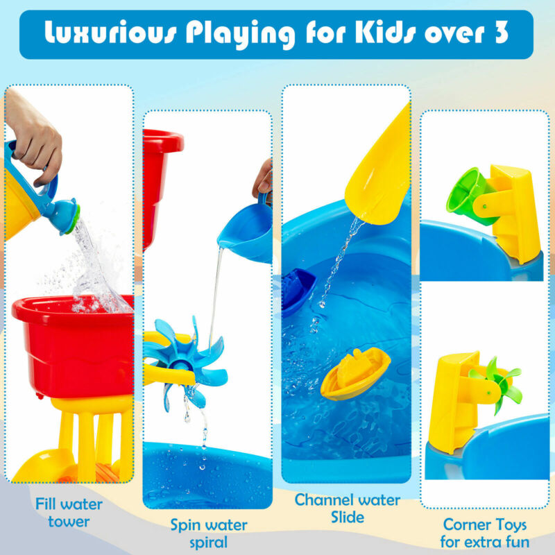 Kids Sand and Water Table 18 Pcs Children Beach Activity Toy Set W/Umbrella Hole