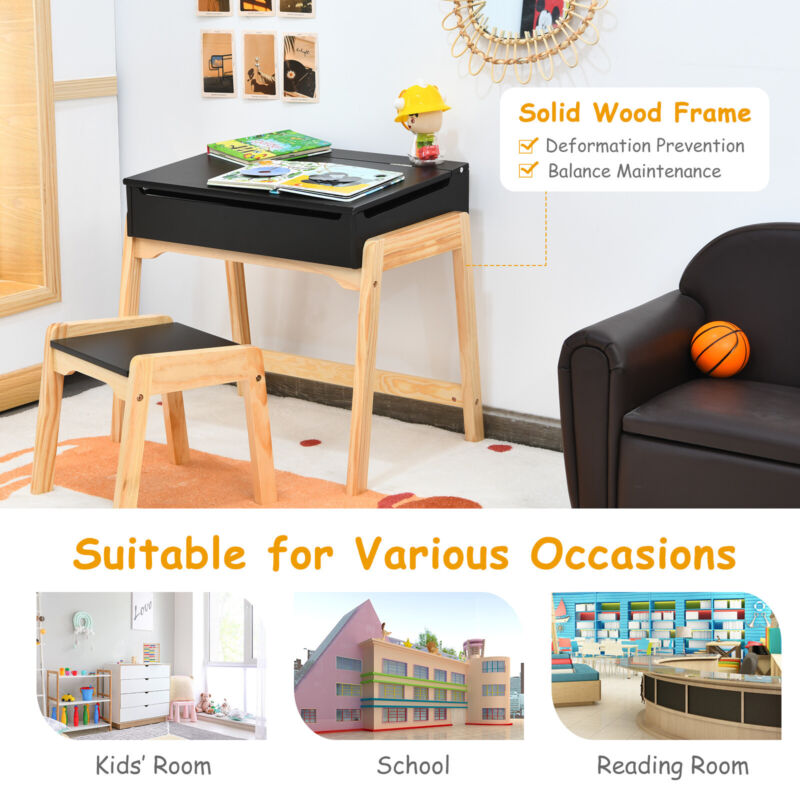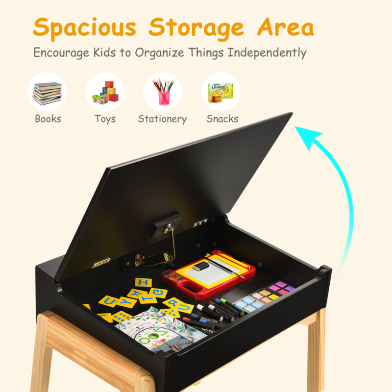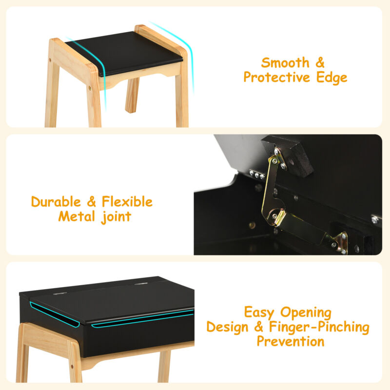 Kids Study Table and Chair Set Drawing Playing Desk W/ Safe Lift-top Tabletop