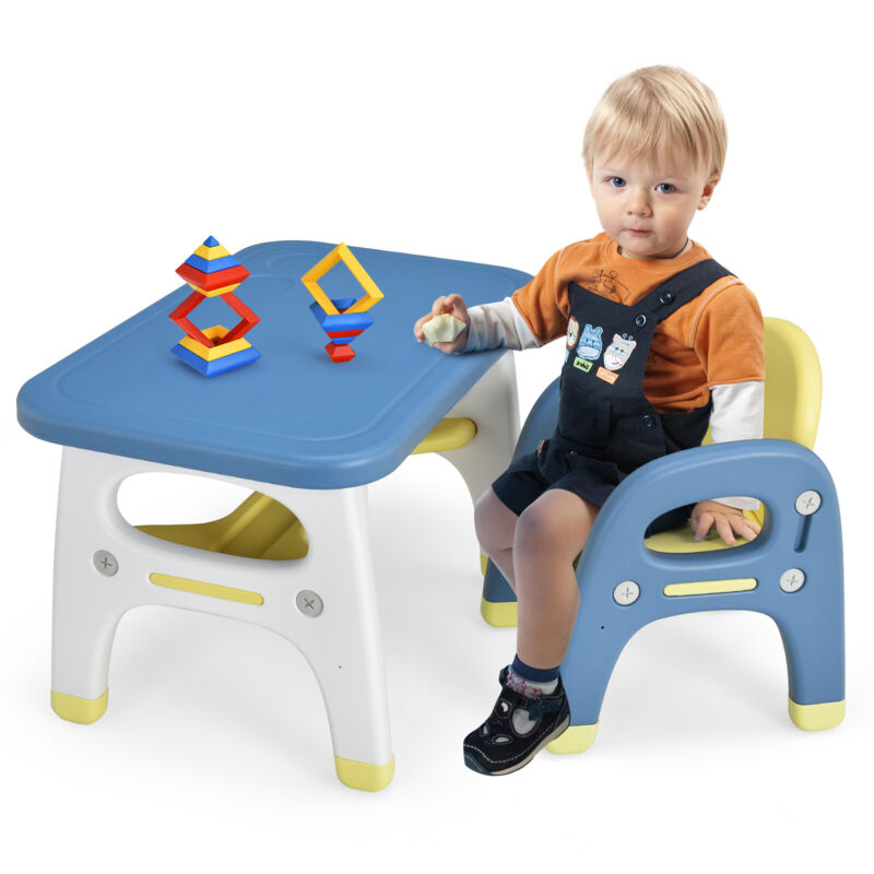 Kids Table and Chair Set Children Activity Art Study Desk Set W/ Building Blocks