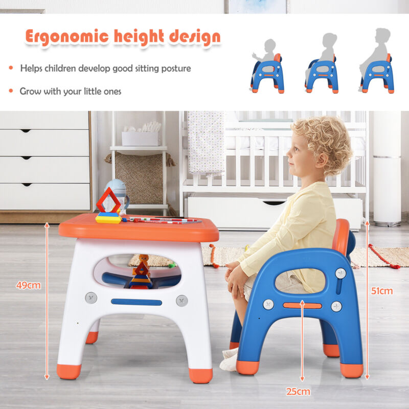 Kids Table and Chair Set Children Activity Art Study Desk Set W/ Building Blocks