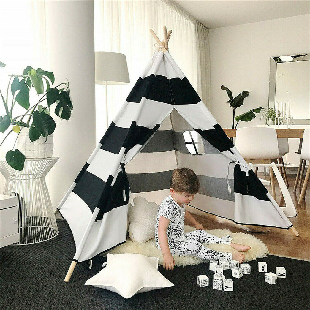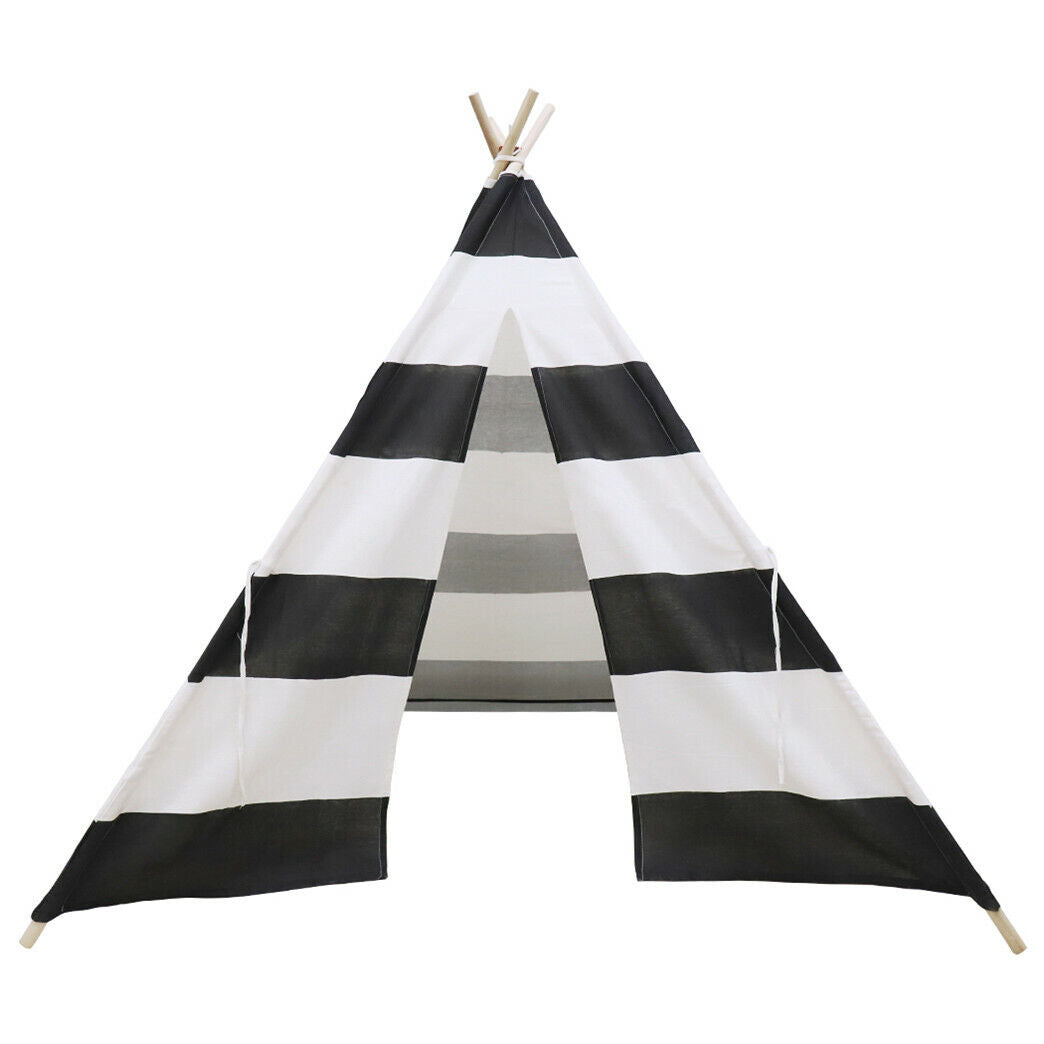 Kids Teepee Tent Black and White Stripe Children Play House for Indoor & Garden