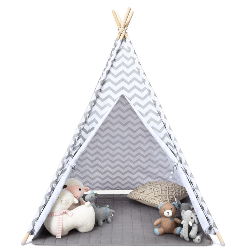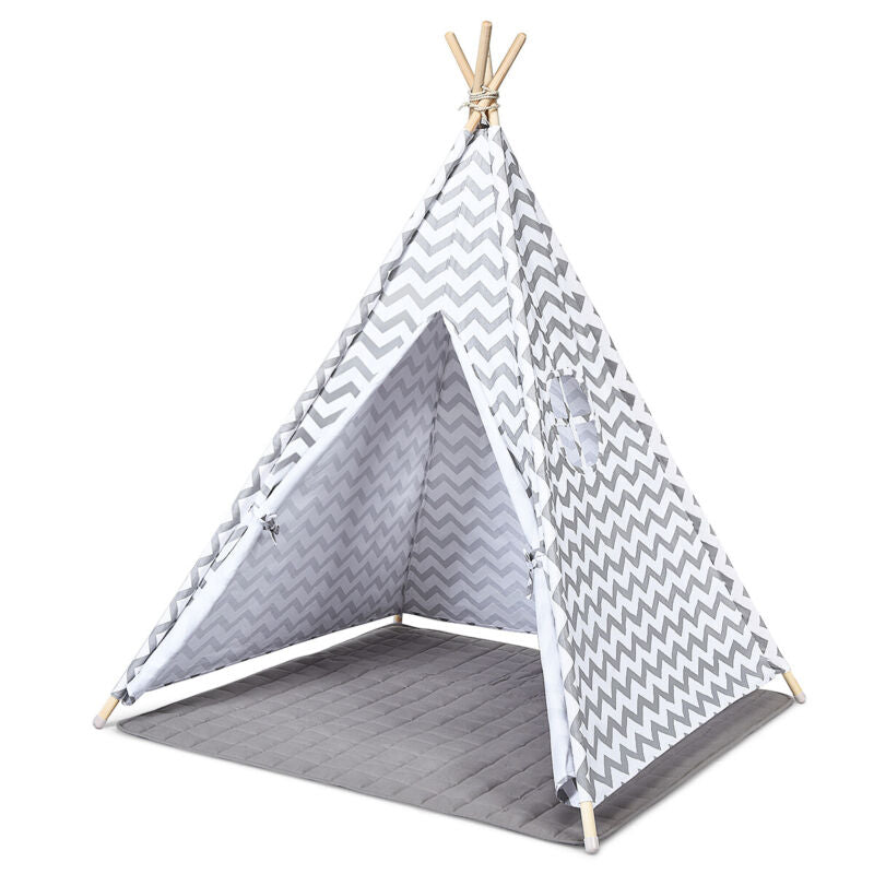 Kids Teepee Tent With Floor Mat Cotton Canvas Indian Indoor Outdoor Play House