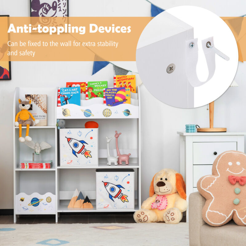Kids Toy and Book Organizer Wooden Children Storage Display Cabinet Bookshelf