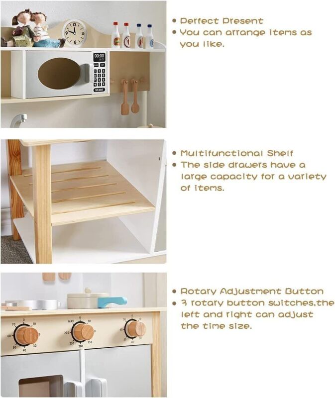 Kids Toy Large Wooden Play Kitchen Playset with Accessories Pretend Cooking Set