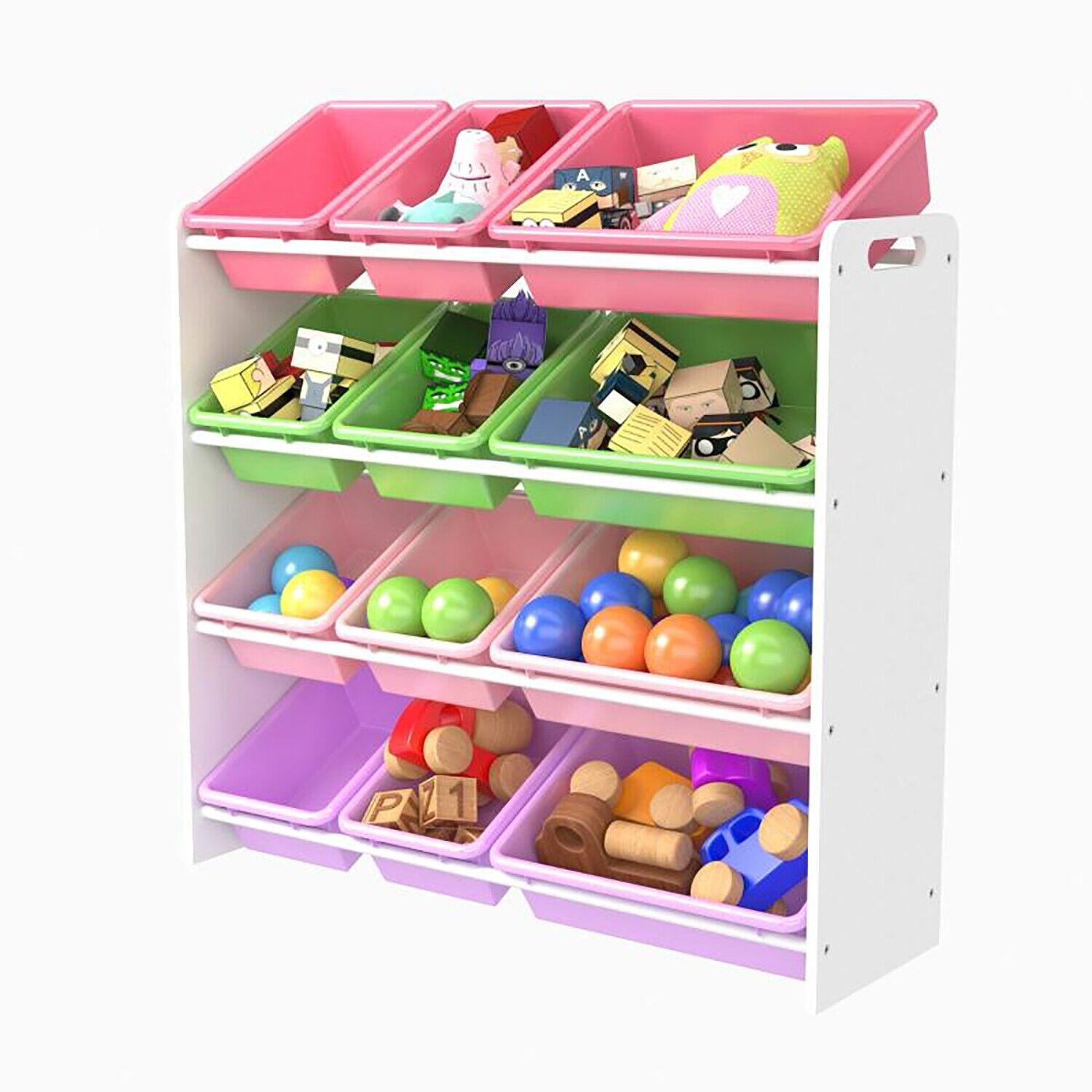 Kids Toy Storage Rack Unit 16 Boxes Removable Bins Freestanding Toy Organizer UK
