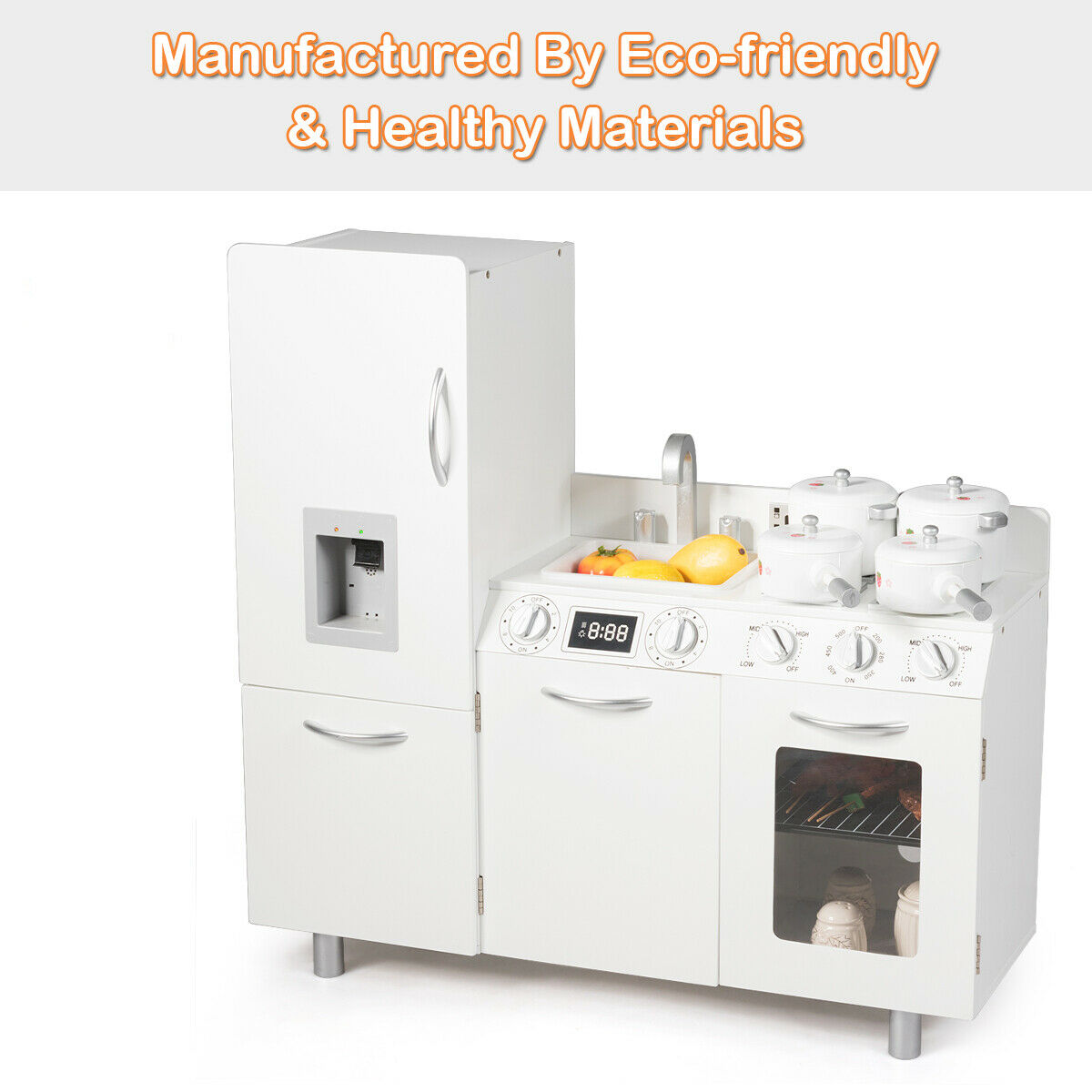 Kids Wooden Kitchen Play set Children Realistic Cooking Role Play Toy W/ Sound