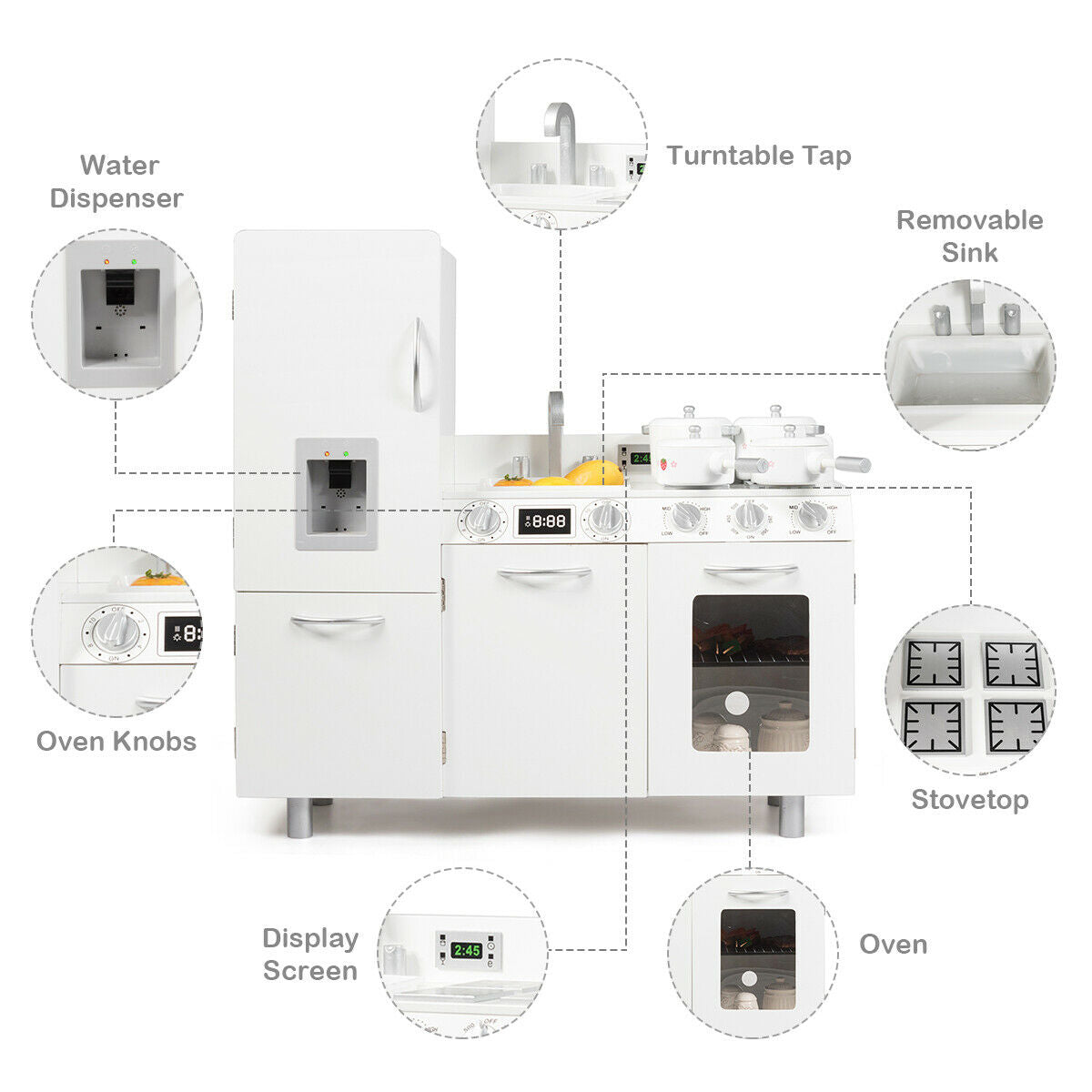 Kids Wooden Kitchen Play set Children Realistic Cooking Role Play Toy W/ Sound