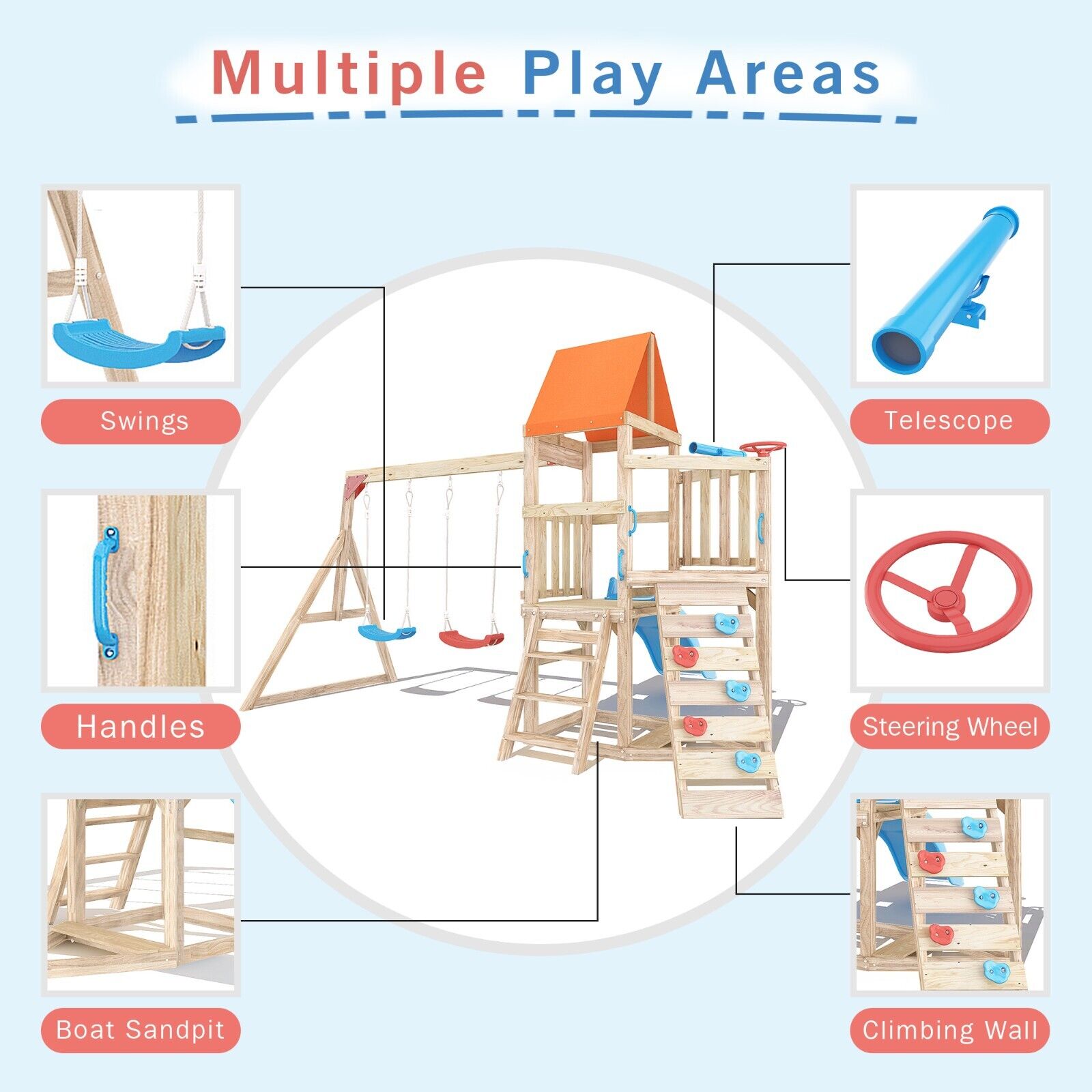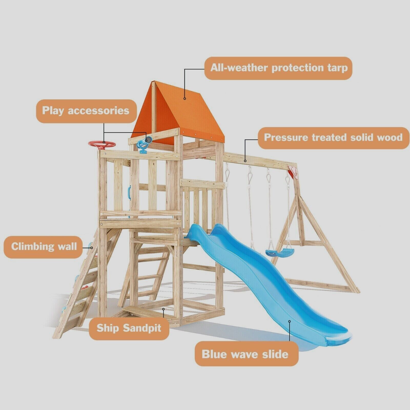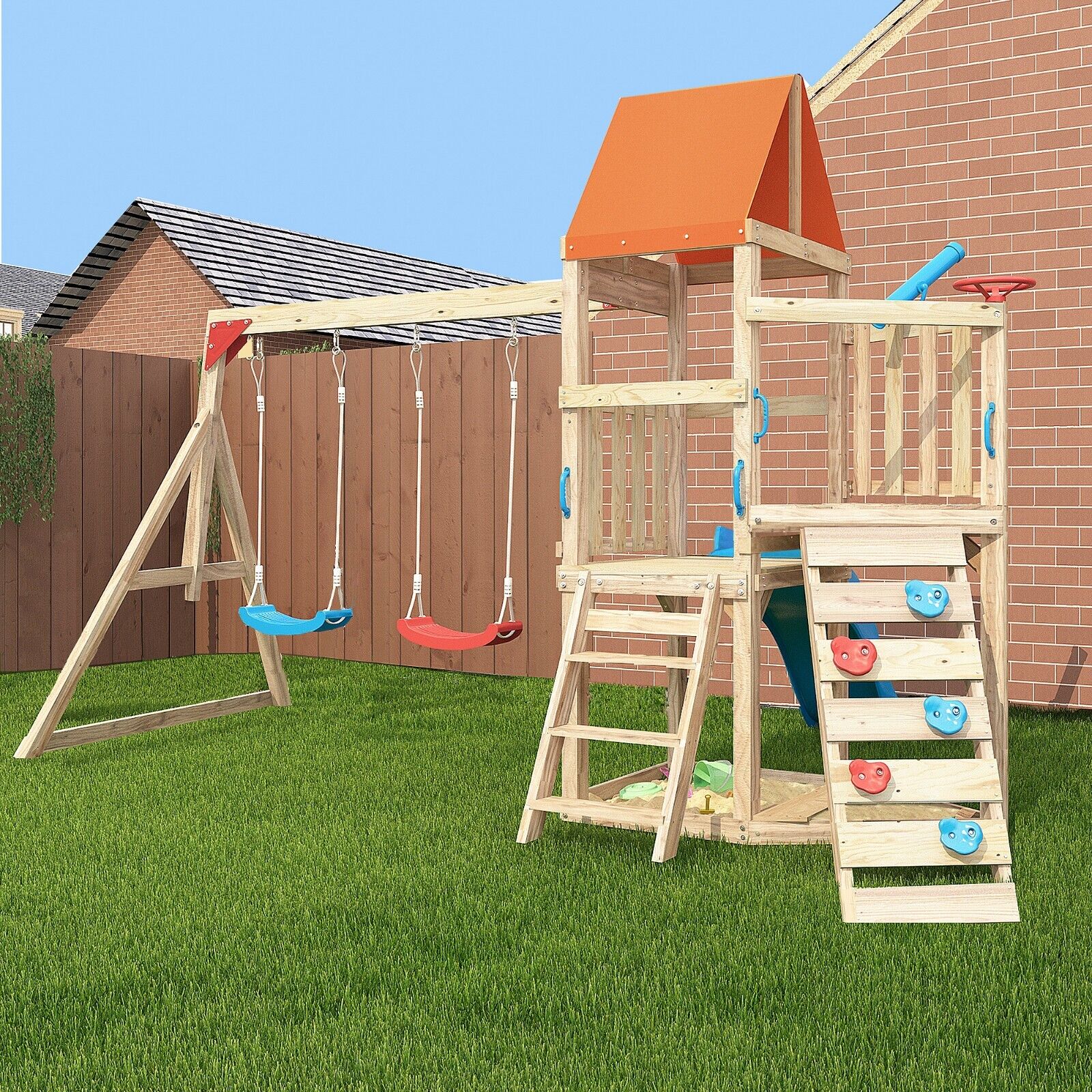 Kids Wooden Swings Slide Set Climbing Wall Frame Garden Play With Slide Sandpit