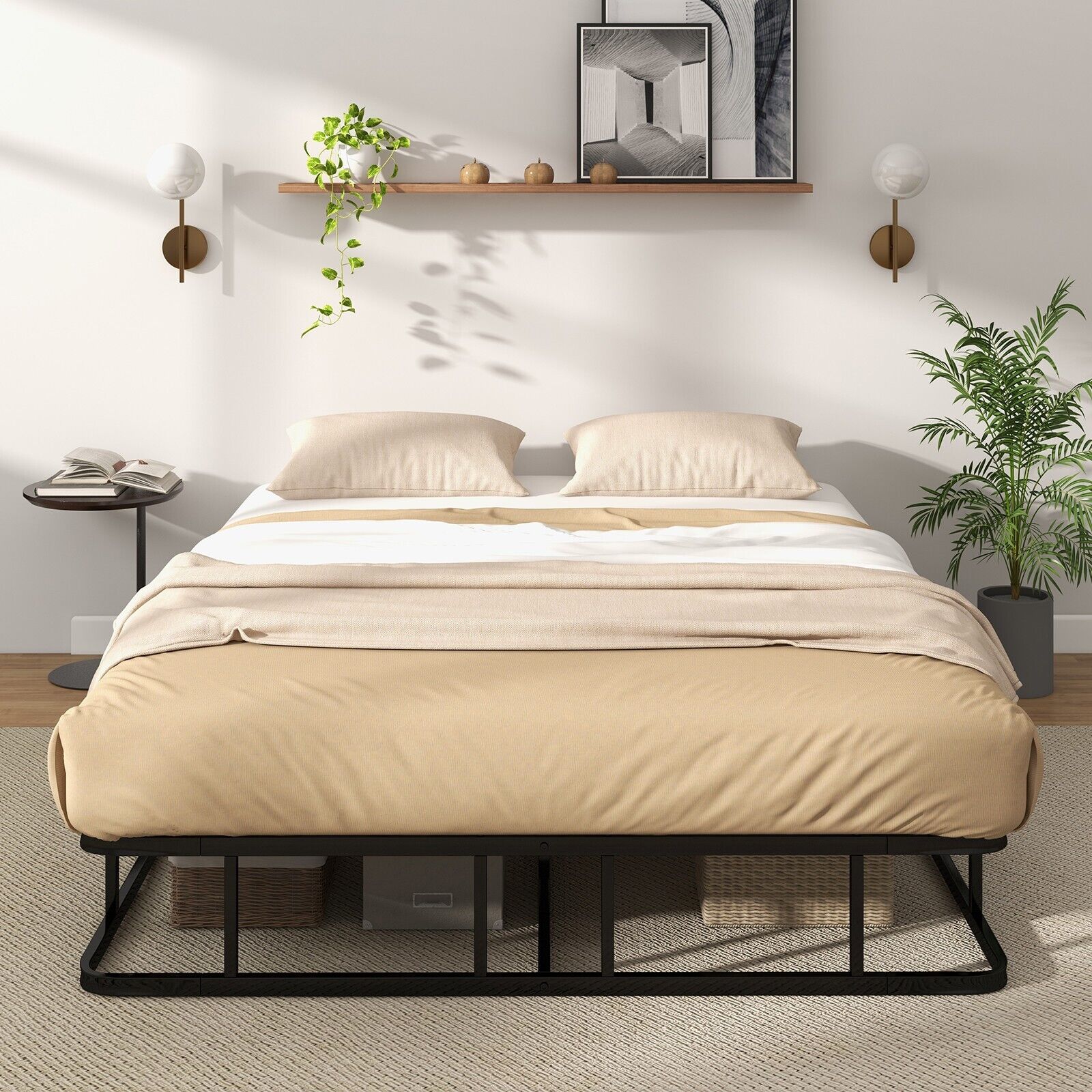 King Size Bed Frame Metal Mattress Foundation Platform Bed Frame Slat Support