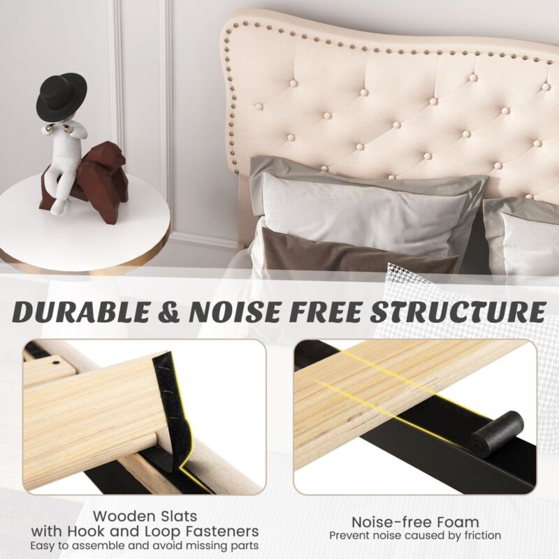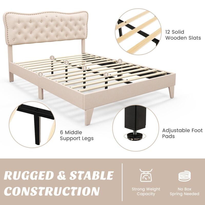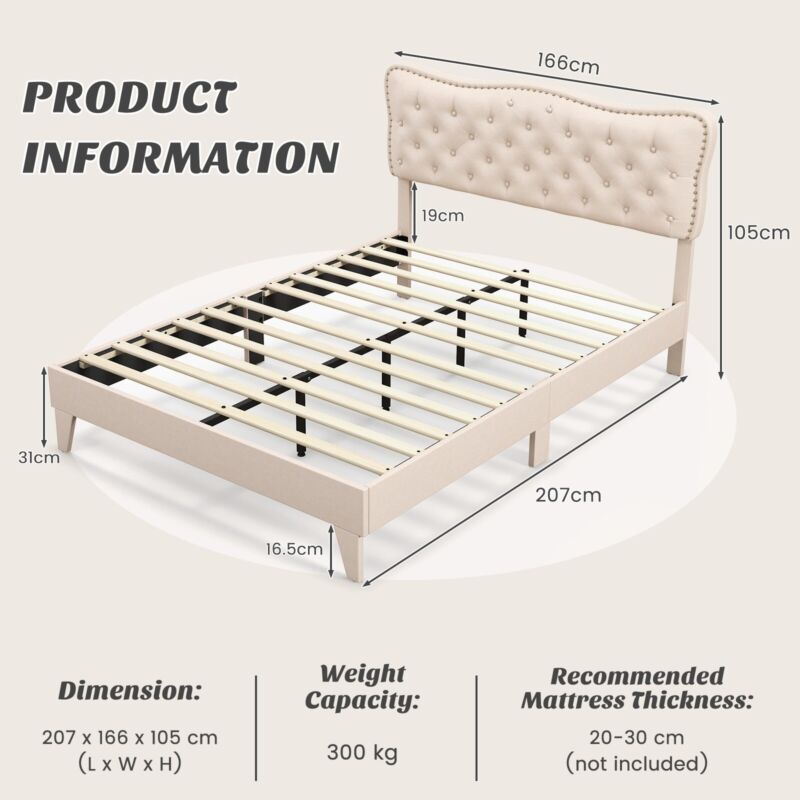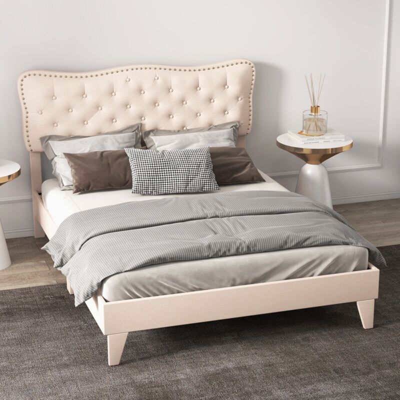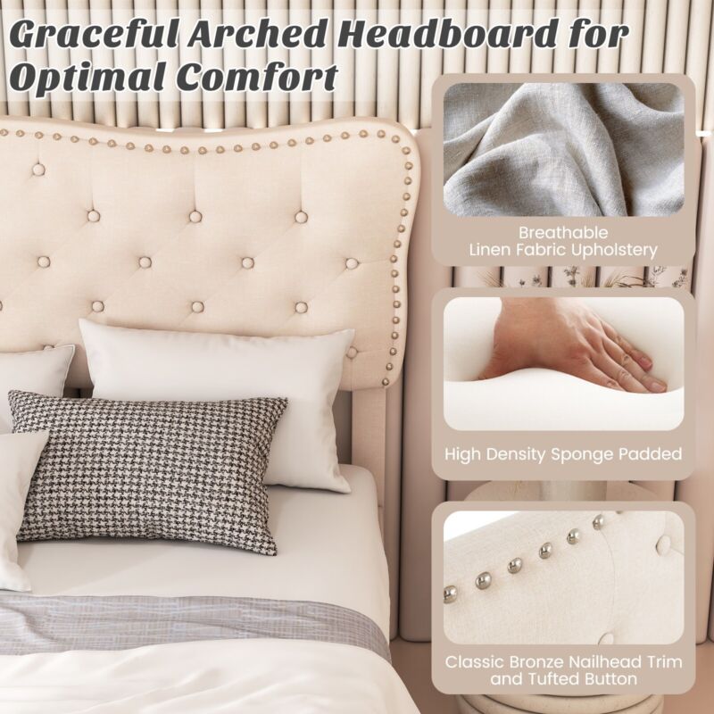 King Size Modern Linen Upholstered Platform Bed Frame Wooden Slats Bed Frame