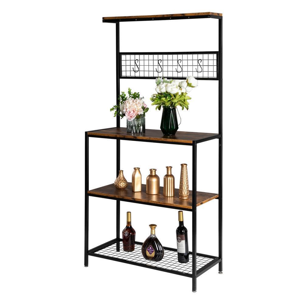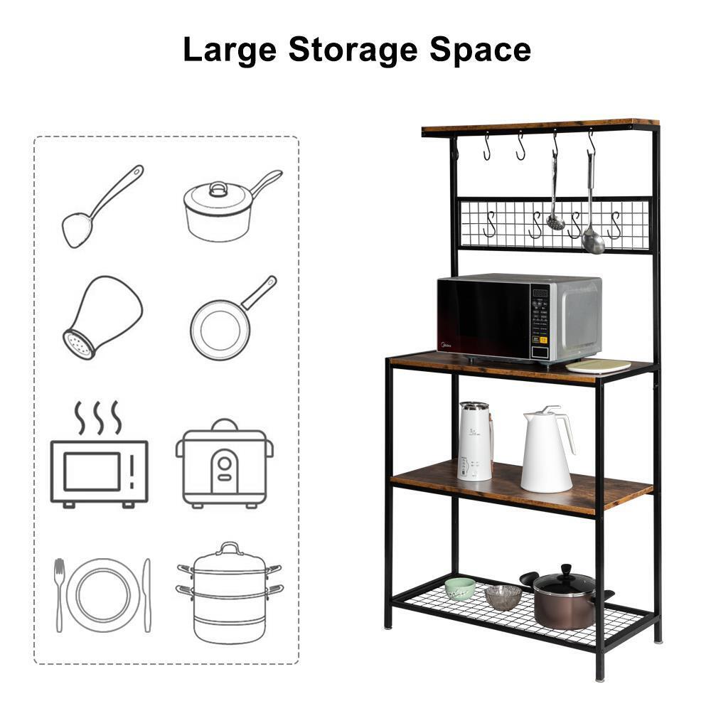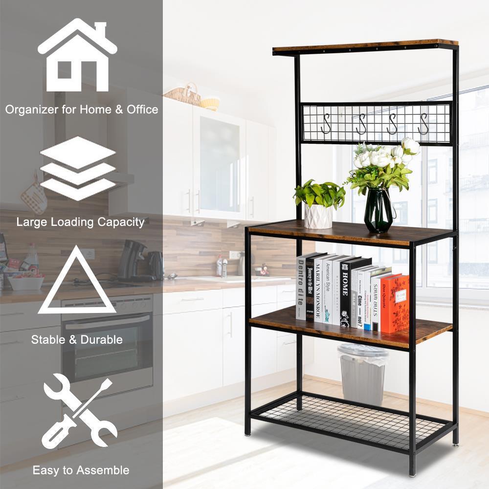 Kitchen Baker's Rack Utility Storage Shelf with 3 Shelves & Hook Micro-wave oven