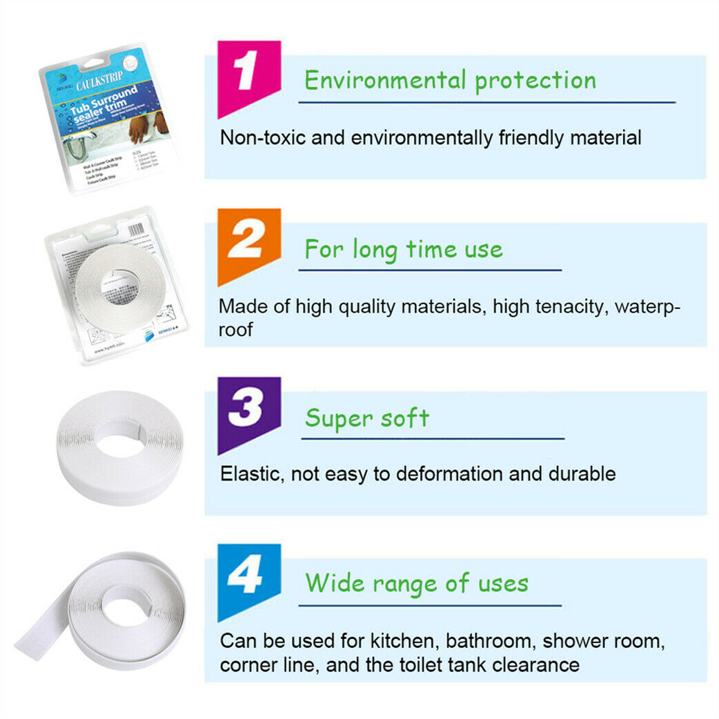 Kitchen Bathroom Self-Adhesive Caulk Strip Sealant Tape Toilet Wall Sealing Edge
