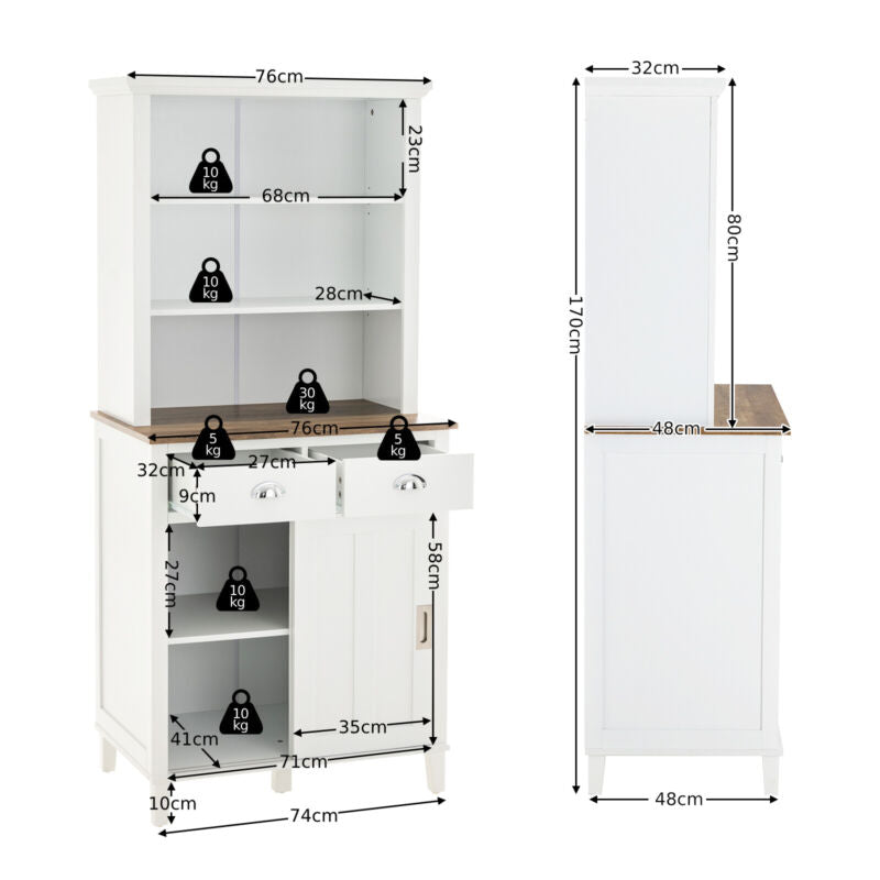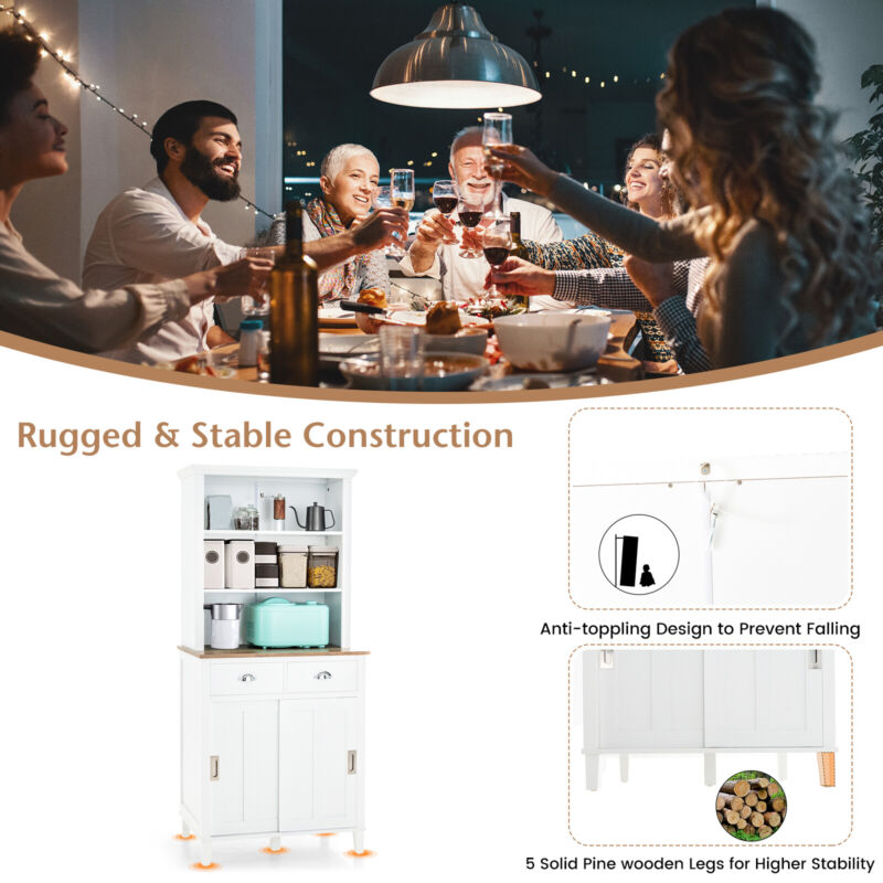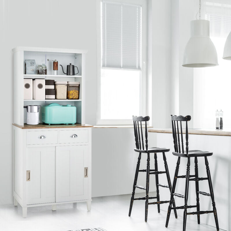Kitchen Buffet Freestanding Kitchen Pantry Storage Cabinet w/ Hutch Sliding Door