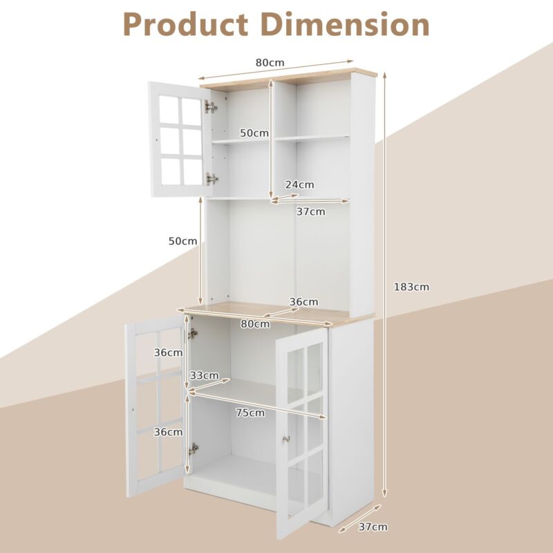Kitchen Buffet Sideboard 183cm Tall Storage Cupboard Freestanding Pantry Cabinet