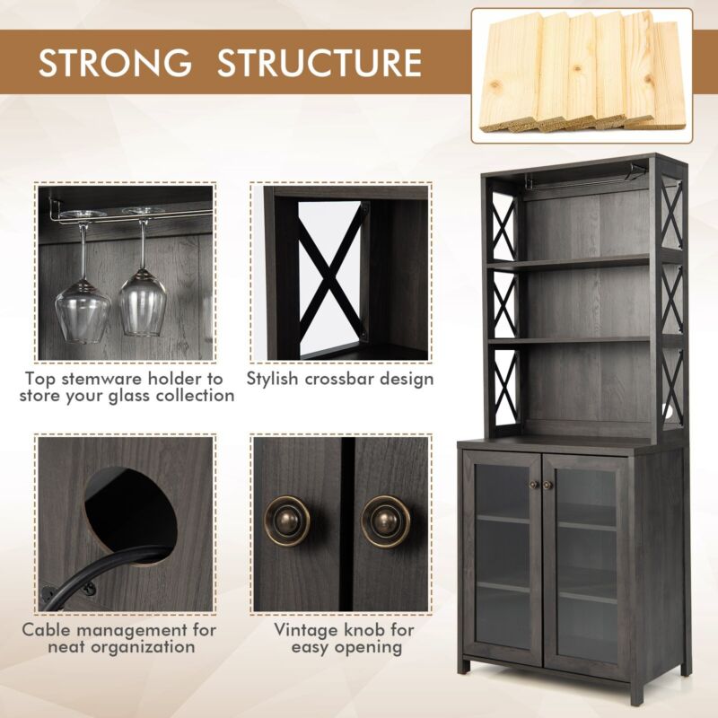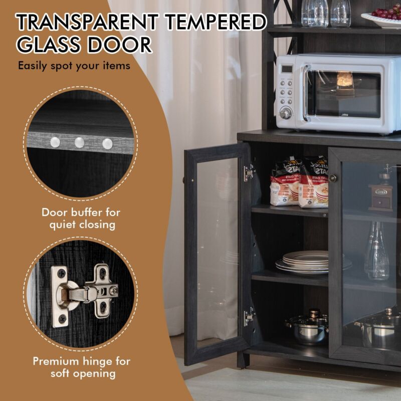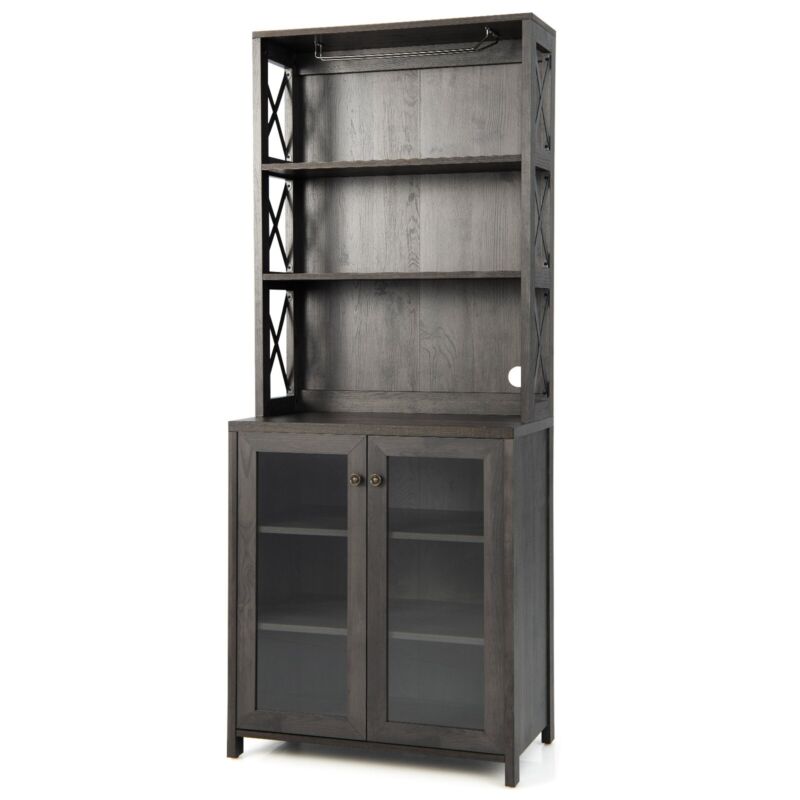 Kitchen Buffet Sideboard Tall Kitchen Pantry Hutch Wood Cupboard w/ Glass Holder