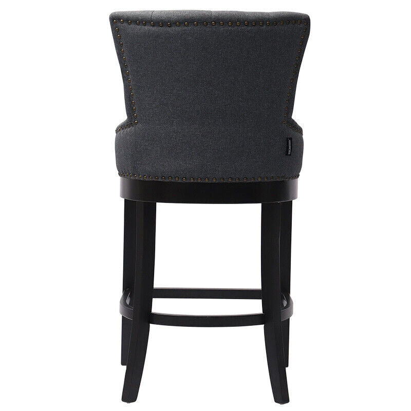 Kitchen Counter Chair Dark Grey Seat Button Studded High Pub Bar Stools Wingback