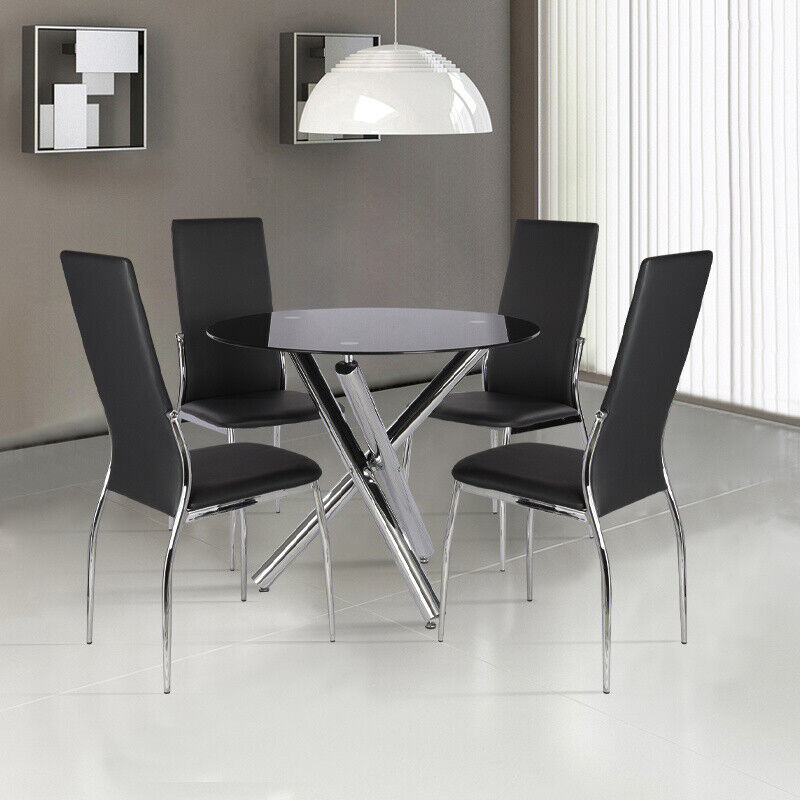Kitchen Dining Table Chairs Modern Leisure Black Glass Unit Bar Metal Legs BPZH9