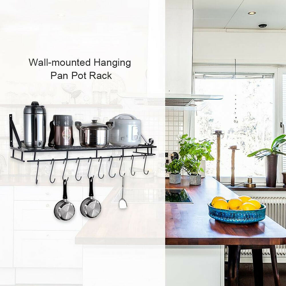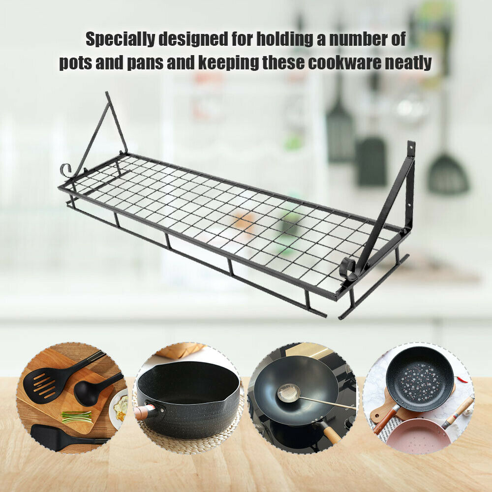 Kitchen Iron Hanging Pot Pan Rack Wall Mount Storage Shelf Saucepan Holder Rack